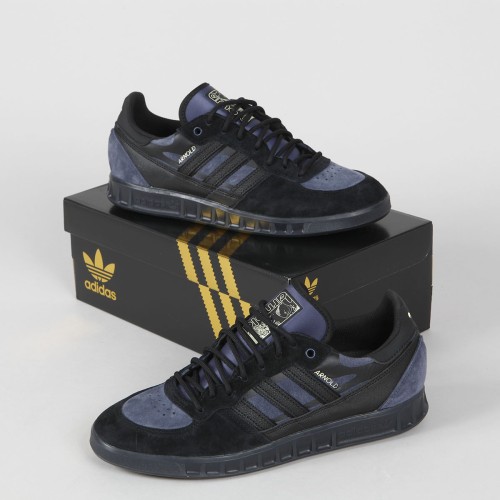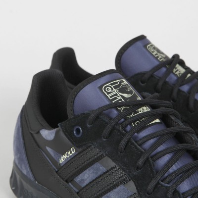 Perforovaná špička, polstrovaný lem kotníku. Z boku tři ikonické pruhy Adidas z premium kůže a žlutá signatura Arnold.