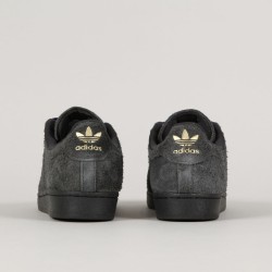 Na bocích mají ikonické pruhy Adidas, na jazyku je kontrastní label s logem a na patě trojlístek. Rovnoběžně s pruhy je zlatý nápis Superstar.