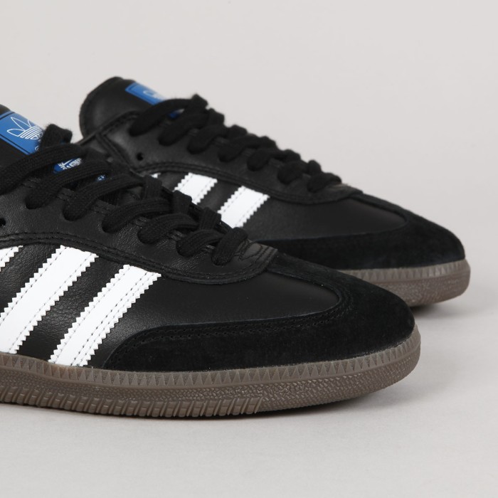 Boty Adidas Skateboarding, model Samba ADV se svrškem z kombinace semiše a hladké kůže. Klasická silueta upravená na skateboarding. Vylepšená podrážka s technologií Geoflex a anatomicky tvarovaná stélka Adiprene. Dvě vrstvy na špičce pro vyšší odolnost. Na jazyku a vnitřní stélce logo adidas.