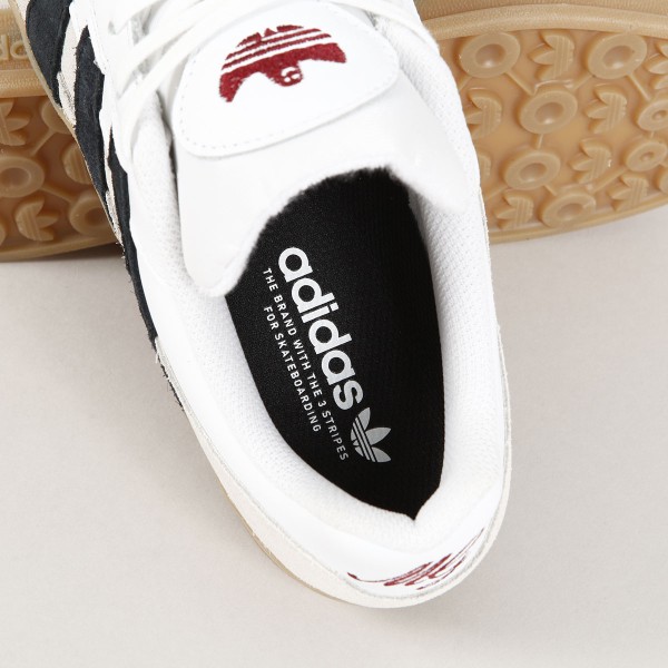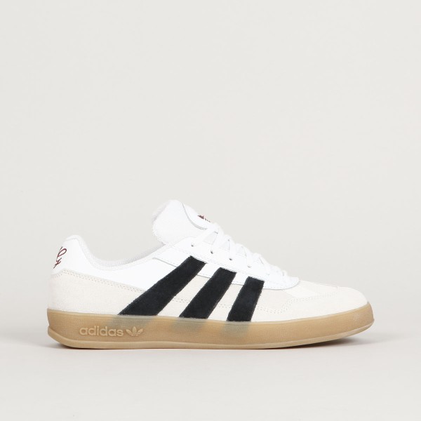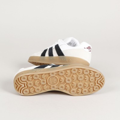 Boty Adidas Skateboarding, pro model Aloha Super upravený skaterem, grafikem a umělcem Markem Gonzalesem. Silueta upravená na skateboarding. Svršek vyrobený ze semiše. Hnědá gumová podrážka a uvnitř anatomicky tvarovaná stélka Adiprene. Dvě vrstvy na špičce pro vyšší odolnost. Na jazyku logo adidas skateboarding v podobě Shmoo ducha. Na patce vyšité iniciály MG - Mark Gonzales. Z boku kontrastní kožné černé pruhy. V balení tkaničky navíc.