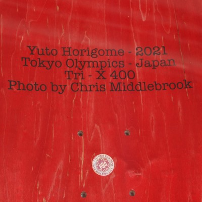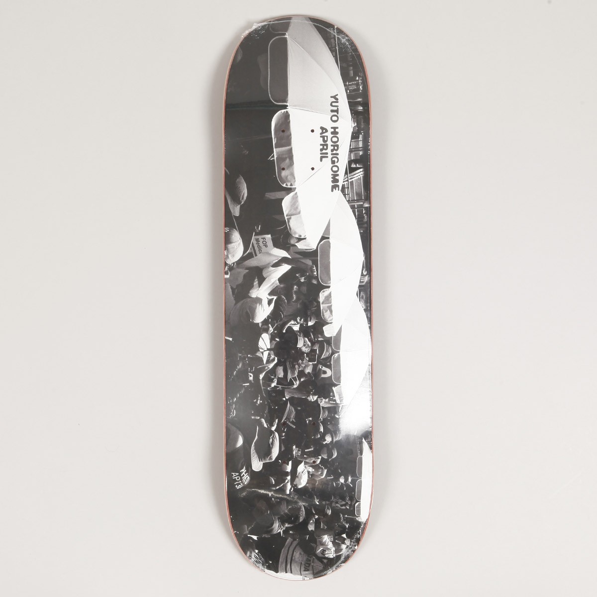 Skateboardová deska April skateboards, týmový model s názvem Yuto Horigome 2021 Deck. Celoplošná grafika fotografie Yuta po vítězství Olympijských Her 2021 s nápisem Yuto Horigome a April. Velikost desky je 8.25 palců. Ke každé desce grip zdarma. Barvená strana dřevěné desky se může lišit oproti zobrazené fotce.