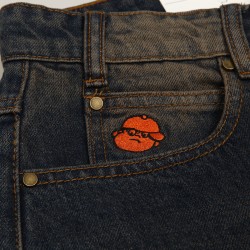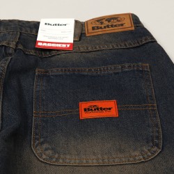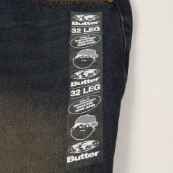 Mají nejširší Baggiest fit střih s mírným zúžením nohavic. Na pravé přední kapse vyšitý obličej kluka a na zadní kapse nášivka s logem Butter. Na horním lemu obdélníková nášivka s vyraženým labelem.