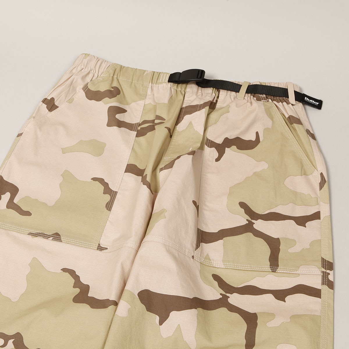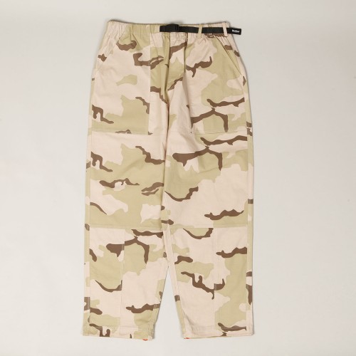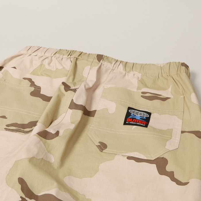 Mají very baggy střih s mírným zúžením nohavic. Po stranách našívané kapsy s nášivkou Butter na zadní kapse. Kalhoty mají motiv pouštního maskování.