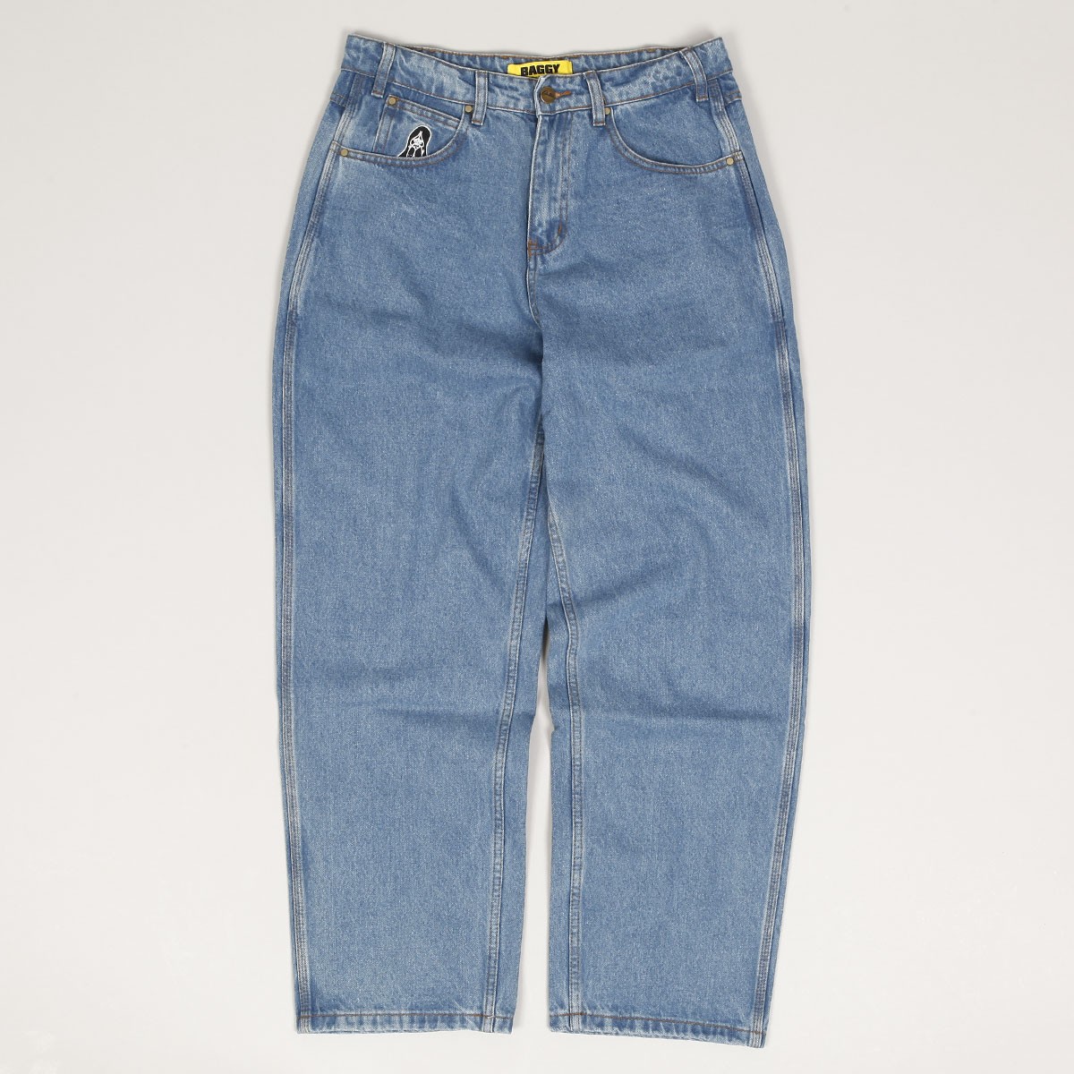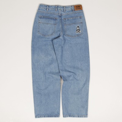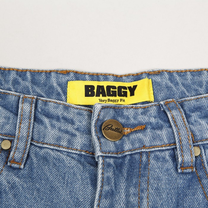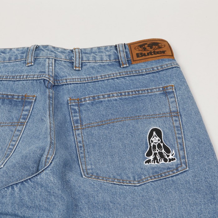 Jeanové kalhoty z kolekce australské značky Butter Goods, kterou v roce 2008 založili skateři a kamarádi Garth Mariano a Matt Evans. Model s názvem Hound Denim Pants v seprané modré barvě má široký Baggy střih. Na pravé přední a zadní kapse vyšitý obrázek psa. V pase ukrytá tkanička na stahování. Na horním lemu na pravé straně obdélníková kožená nášivka s vyraženým labelem Butter.