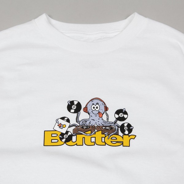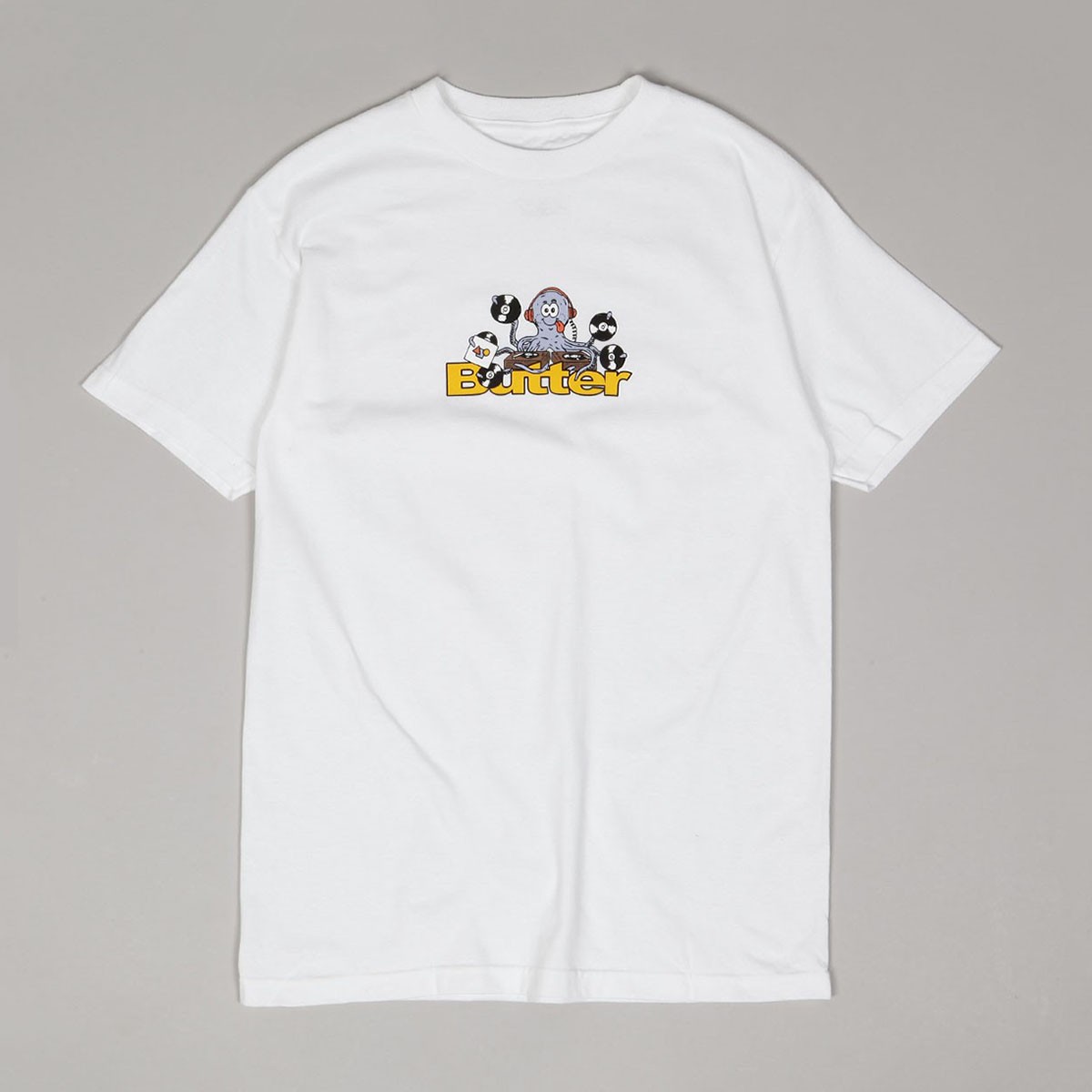 Triko z kolekce australské značky Butter Goods, kterou v roce 2008 založili skateři a kamarádi Garth Mariano a Matt Evans. Model s názvem Octoups Logo Tee v bílé barvě má na prsou kontrastní barevný potisk chobotničky za mixem s nápisem Butter. Materiál 100% bavlna.