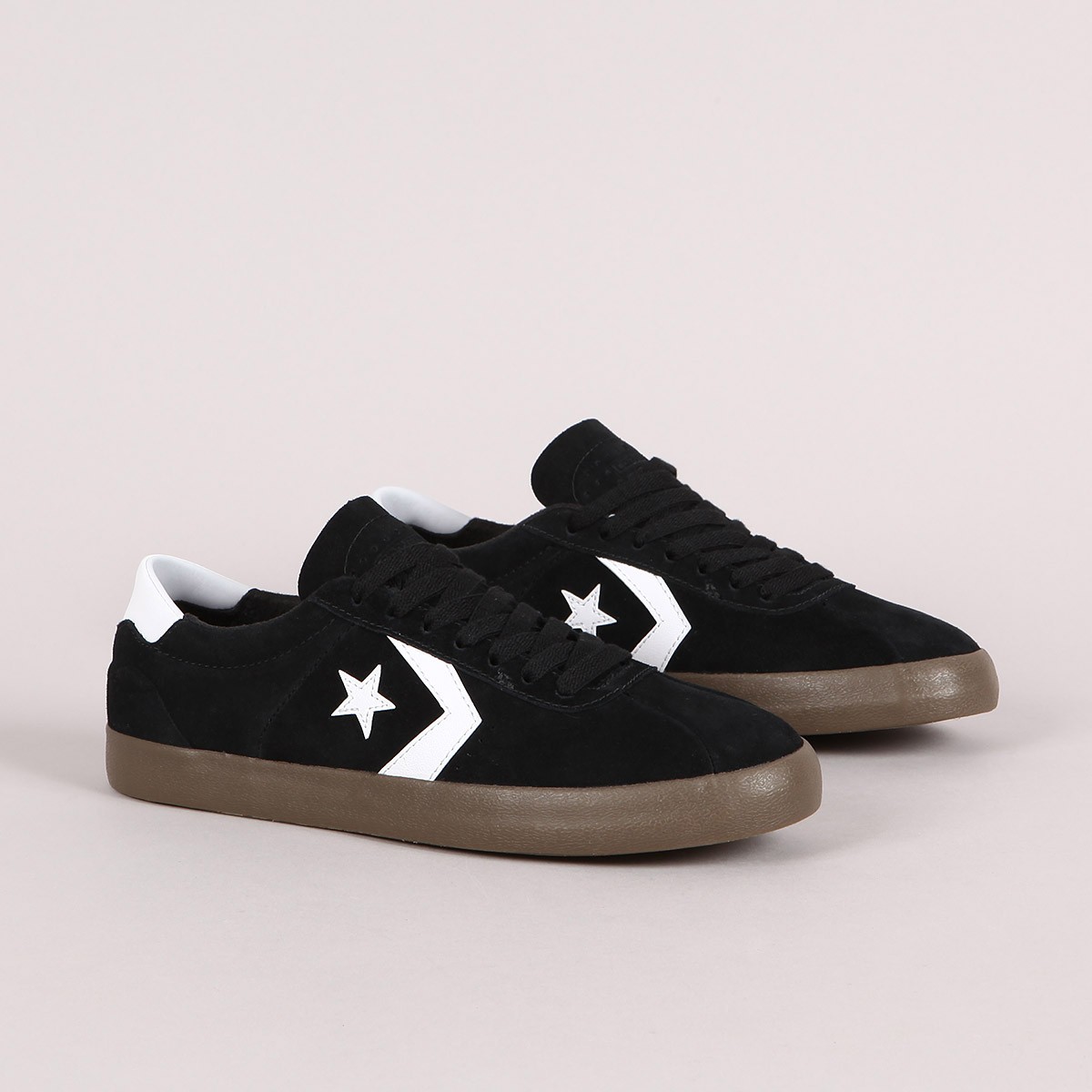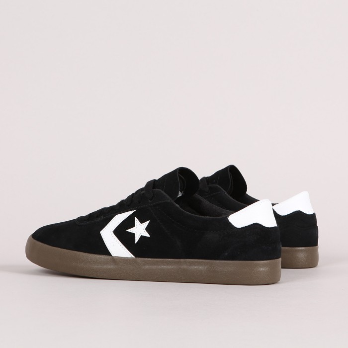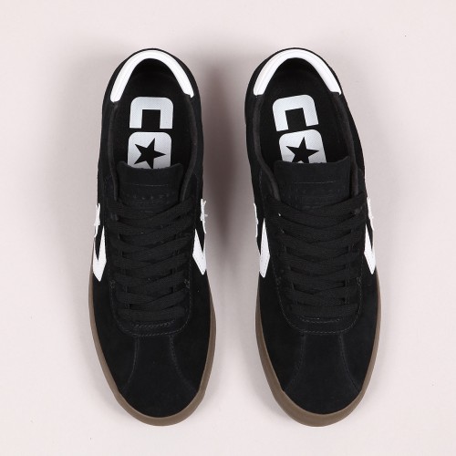 Boty z kolekce značky Converse CONS. Model Breakpoint Pro Black White Gum v černém semišovém provedení a vulkanickou GUM podrážkou v hnědé barvě. Švy na špičce jsou všité dovnitř pro delší životnost a další vychytávkou je kožený lem i vnitřku patky, který také prodlouží její životnost. Z boku boty je našité bílé kontrastní logo Star Chevron. Polstrovaný lem kolem kotníku, odolná špička a vnitřní vložka s technologií Nike Zoom Air pro měkkčí dopady a větší pohodlí. Na perforovaném jazyku je pak vyražené logo Converse CONS.