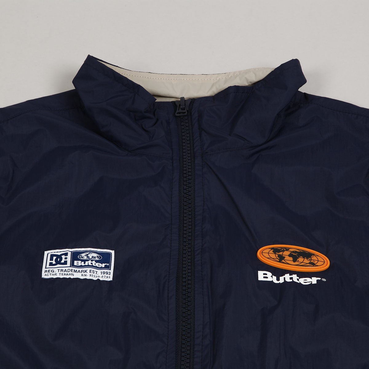 Bunda DC x Butter Goods Windbreaker s odepínatelnými rukávy. Inspirováno retro modely oblečení z konce 90.let.