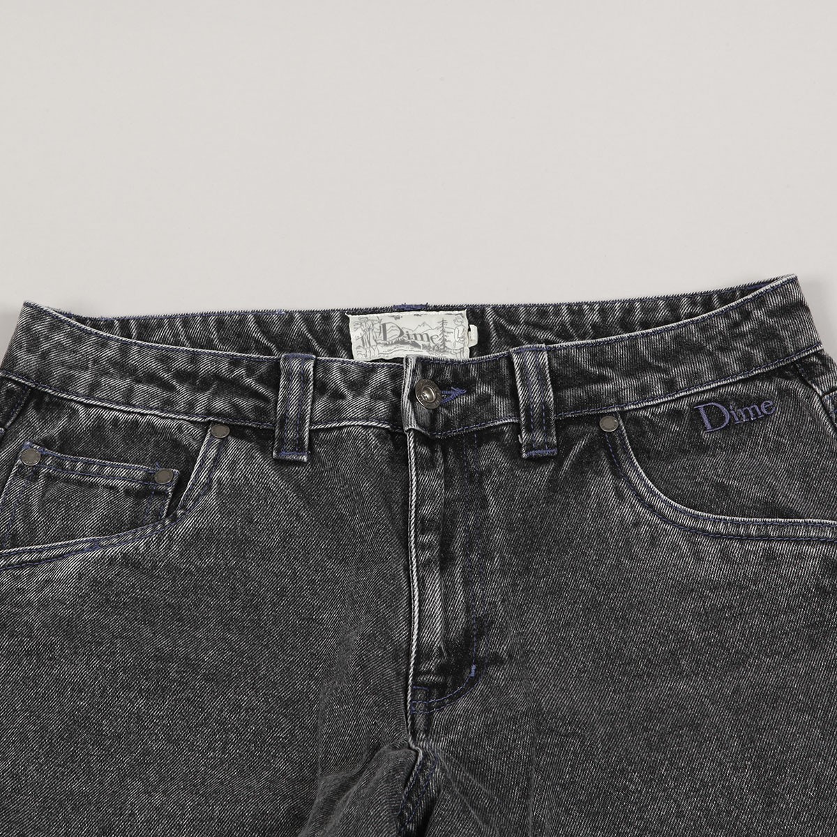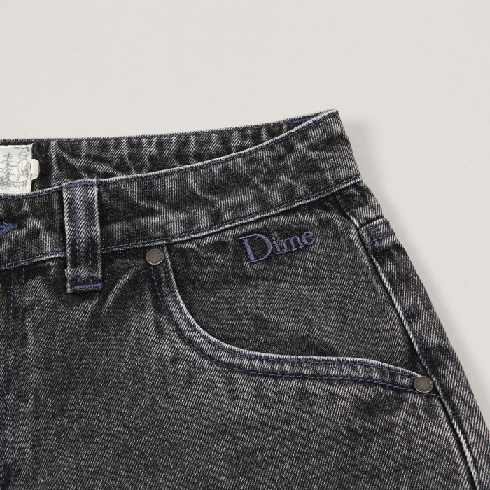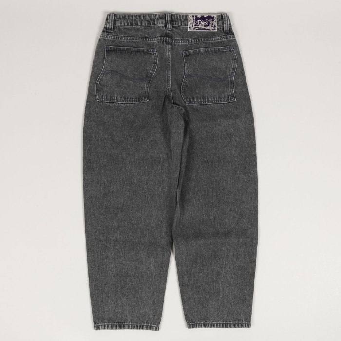 Jeanové kalhoty Dime s názvem Classic Baggy Denim Pants ve vybledlé černé barvě. Na přední levé kapse výšivka Dime. V pase výšitý Dime label. Zapínání na knoflík a zip YKK. Volný široký střih - Baggy fit. Materiál 100% bavlna.
