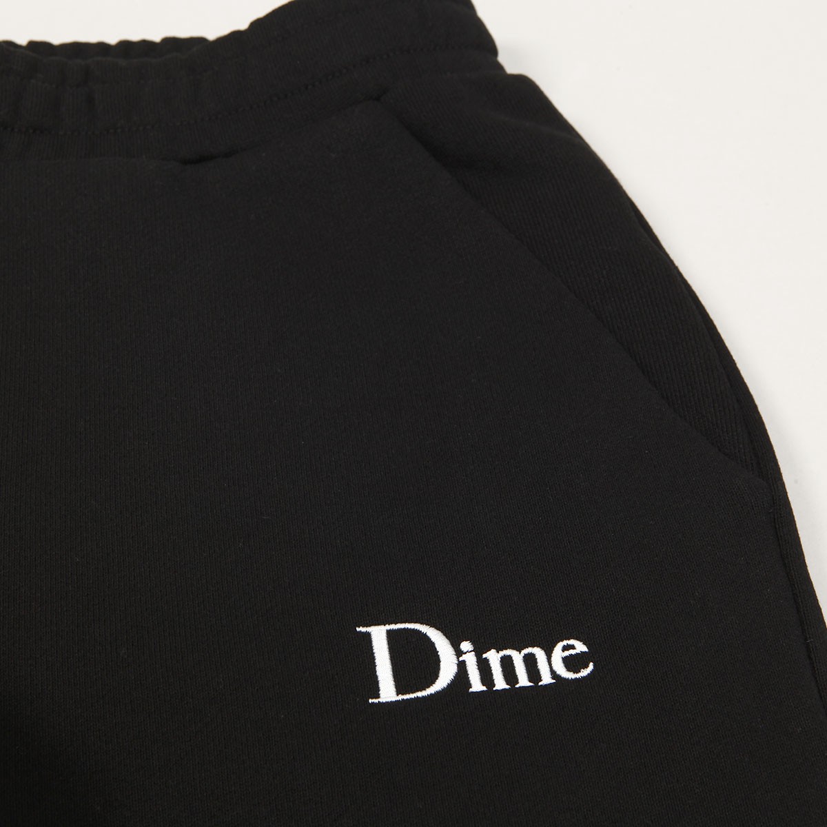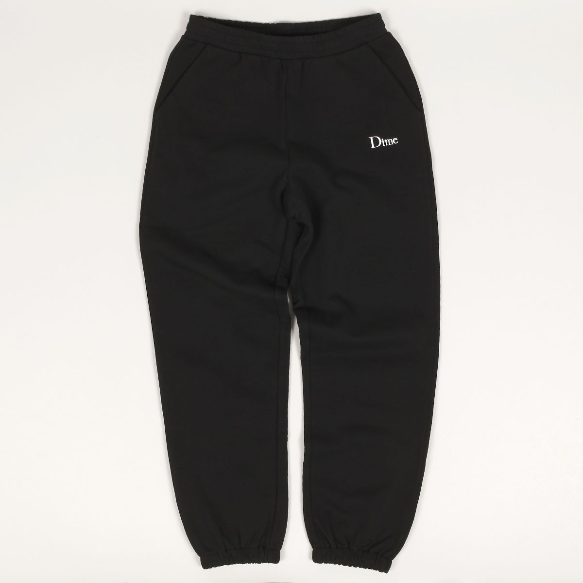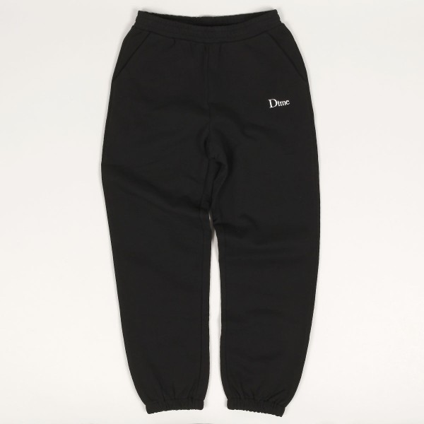 Dime sweatpants called Classic Small Logo Sweatpants in black. Contrasting Dime logo embroidered on the left leg. Elastic waistband with drawstring and tapered legs. Material 100% heavy cotton.
