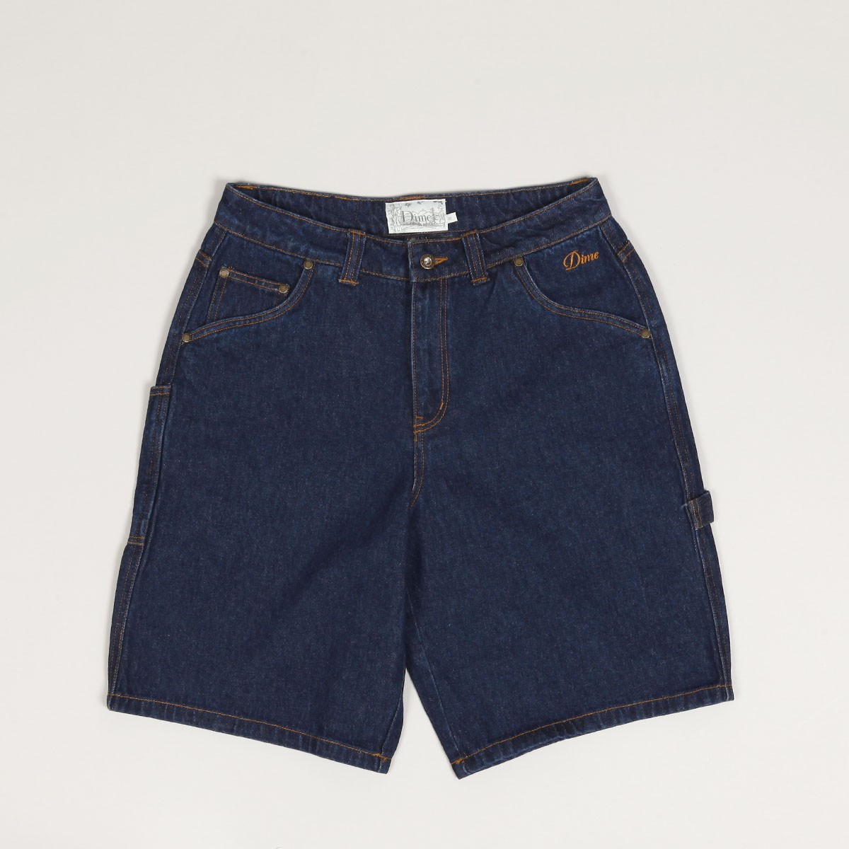 Kraťasy Dime s názvem Classic Denim Shorts v tmavě modré barvě. V levé přední kapse vyšité decentní logo Dime. Na levé nohavici poutko na kladivo a na pravé malá kapsička na drobnosti. V pase vyšitý label Dime. Zapínání na knoflík a zip YKK. Klasický střih - Regular fit. Materiál 100% bavlna.
