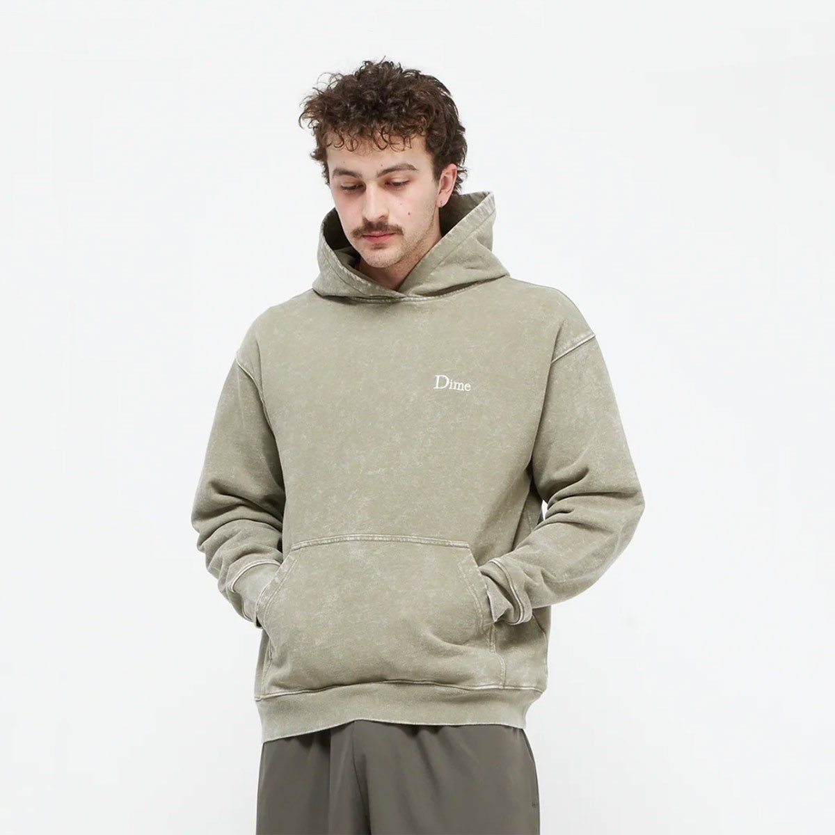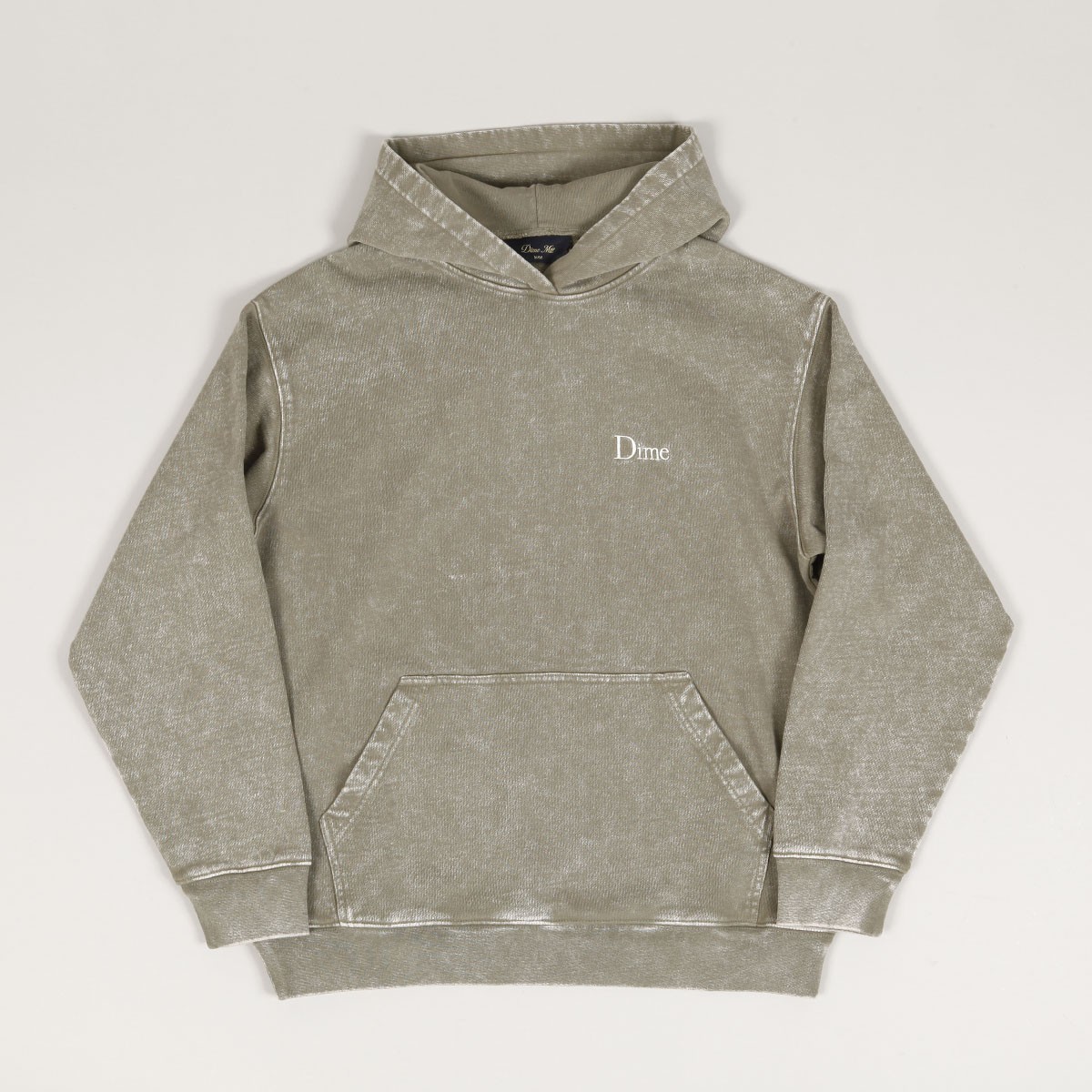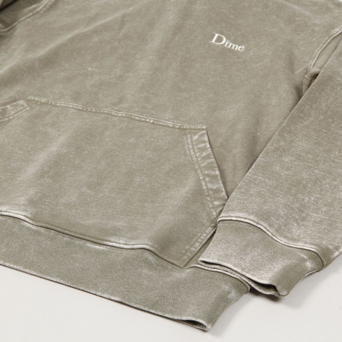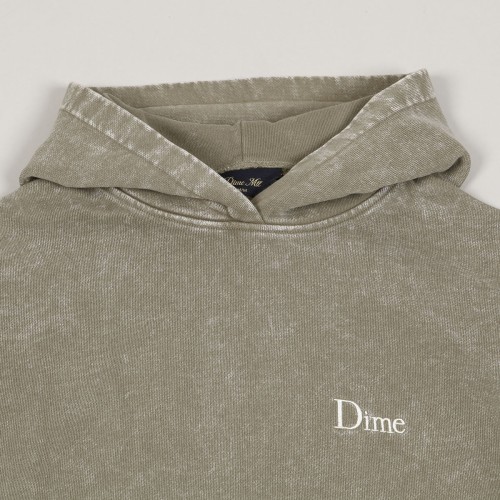 Mikina Dime s názvem Classic French Terry Hoodie ve vybledlé barvě cementu. Na levé straně prsou vyšité malé kontrastní logo Dime. Kapuce a velká přední kapsa. Žebrované, elastické konce rukávů a pas. Materiál 100% bavlna s vyšší gramáží.