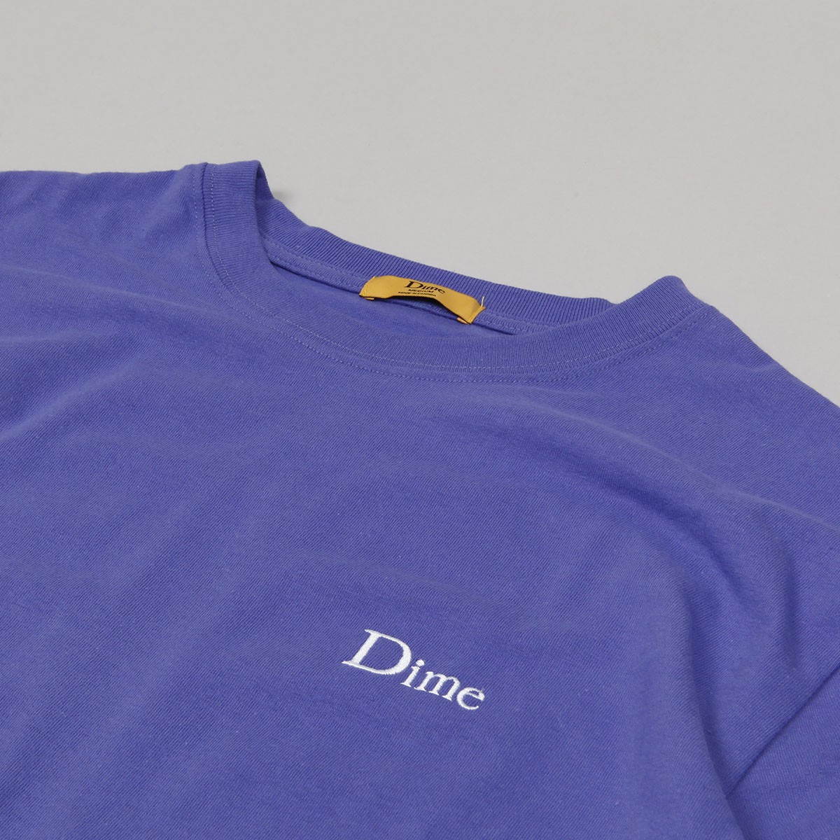 Triko Dime s názvem Classic Small Logo Tee v tmavě fialové barvě. Na levé straně prsou vyšité malé kontrastní logo Dime. Materiál 100% bavlna.