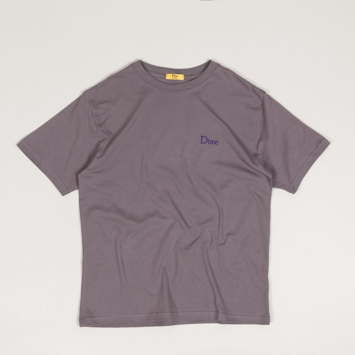 Triko Dime s názvem Classic Small Logo Tee ve fialově-šedé barvě. Na levé straně prsou vyšité malé kontrastní logo Dime. Materiál 100% bavlna.