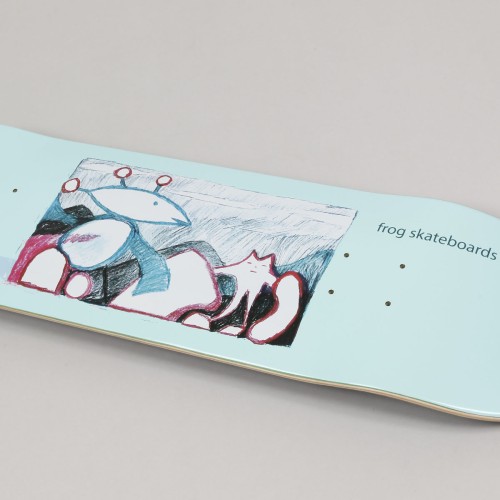 Skateboardová deska Frog Skateboards. Model s názvem Extra Help Deck, kreslená grafika obrazu a nápisu Frog Skateboards. Velikost 8.25 palců. Vrchní barvená strana desky se může lišit oproti fotce. Ke každé desce grip zdarma.