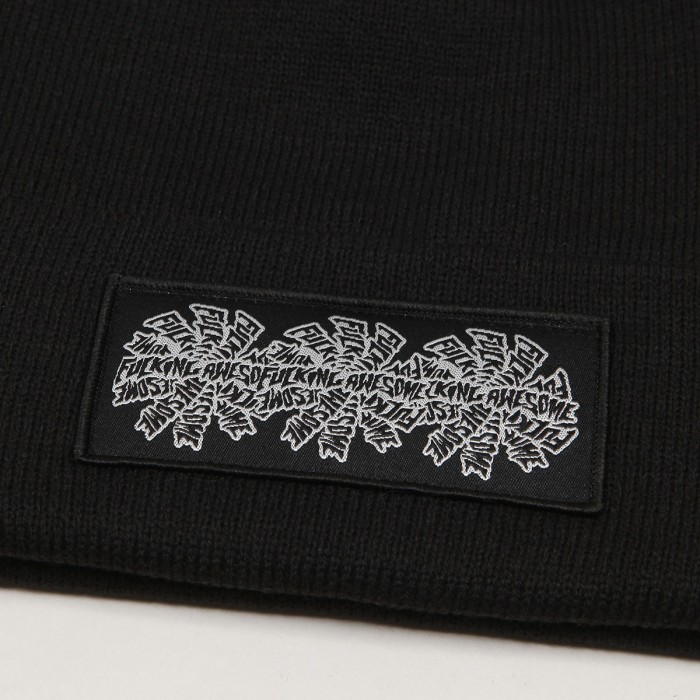 Kulich Fucking Awesome s názvem Three Spiral Edge Stitch Beanie v černé barvě. Klasický delší střih s přehnutým lemem. Na lemu nášivka s trojitým spirálovým logem Fucking Awesome. Vyrobeno ze 100% akrylu.