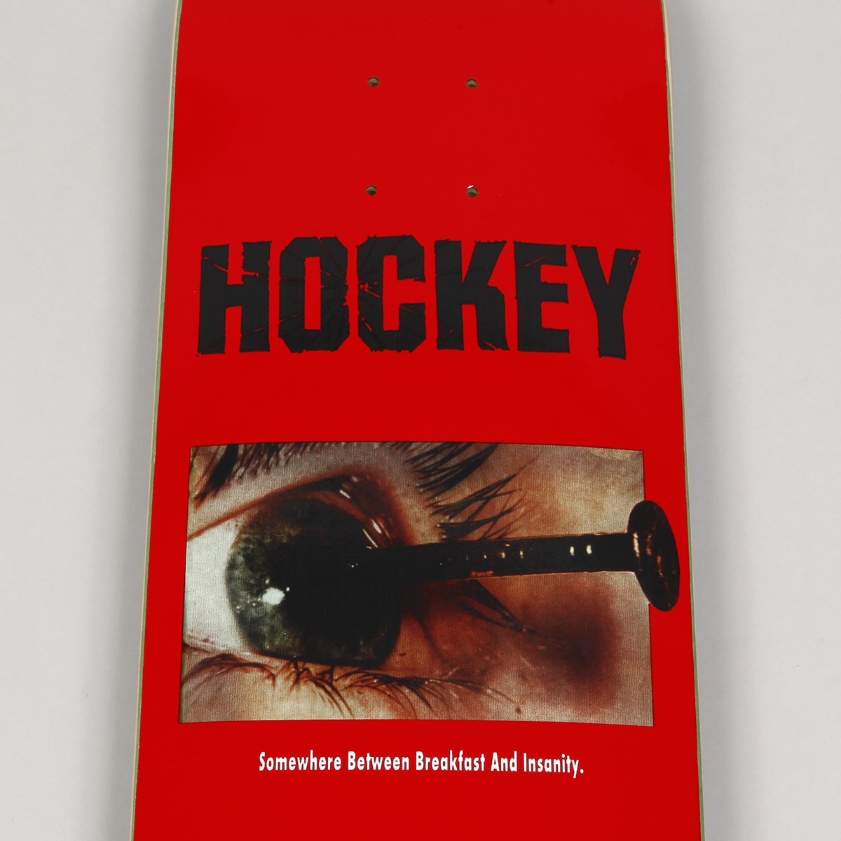 Skateboardová deska od značky Jason Dilla a AVEho - Hockey Skateboards. Promodel ridera Bena Kadow s názvem Breakfast Insanity Red Deck, grafika hřebíku v oku a nápisu Hockey. Velikost 8.25 a 8.38 palců. Vrchní barvená strana desky se může lišit oproti fotce. Ke každé desce grip zdarma.