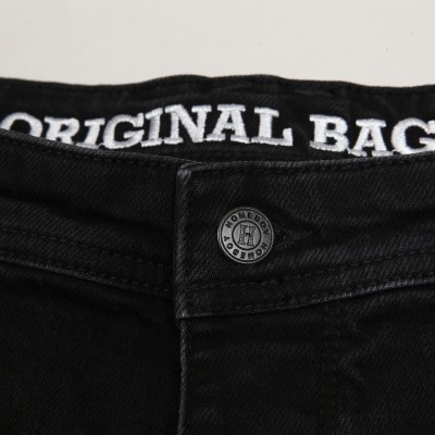 Jeanové kalhoty Homeboy s názvem X-Tra Monster Denim v seprané černé barvě. Jsou inspirovány klasickým vintage vzhledem kalhot z 90. let. Mají super široký Monster střih, vypasované boky a lehké zúžení konců nohavic. V levé přední kapse vyšitý kontrastní nápis Homeboy X-Tra. Na zadní kapse prošívání do X a decetní duhová vlaječka. Na horním lemu label Homeboy. Mají zapínáni na knoflíky. Vyrobeno z 99% bavlny a 1% elastanu.