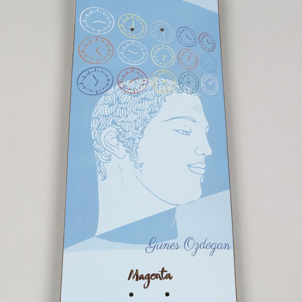 Deska Magenta od francouzské značky Magenta skateboards, kterou založili kamarádi a skateři Soy Panday, Vivien Feil a Jean Feil. V týmu Magenta můžeš vidět jména jako Vivien Feil, Soy Panday, Leo Valls, Jimmy Lannon a další. Pro-model ridera Gunese Ozdogana s názvem Sleep Deck má abstraktní grafiku snu s malým nápisem Magenta. Velikost 8.125 palců. Vrchní barvená strana desky se může lišit oproti fotce. K desce dodáváme grip zdarma. Vyrobeno v USA.