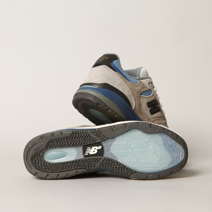 Na boku a patě kontrastní logo New Balance. Na jazyku je oválné logo se signaturou Andrew Raynoldse. Na siluetě bot a barevném provedení spolupracoval rider Andrew Reynolds.