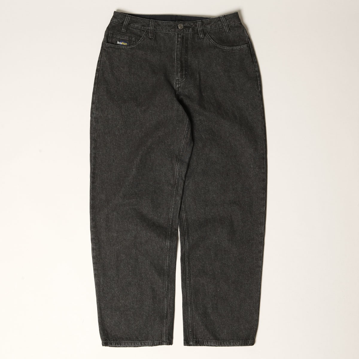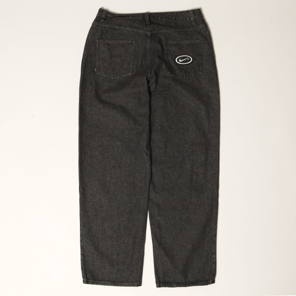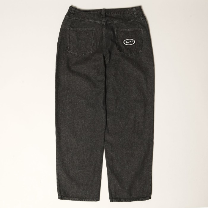 Kalhoty Nike SB s názvem Loose Denim Pants mají zapínání na knoflík, poklopec na zip. Uvnitř je skrytá šňůrka pro úpravu velikosti v pase. Levou zadní kapsu zdobí decentní vlaječka Koston. Na druhé kapse je reflexní výšivka s logem Nike. A v přední pravé kapse oválný label s nápisem Koston. Jeany mají široký Loose Fit střih s rovnými nohavicemi.