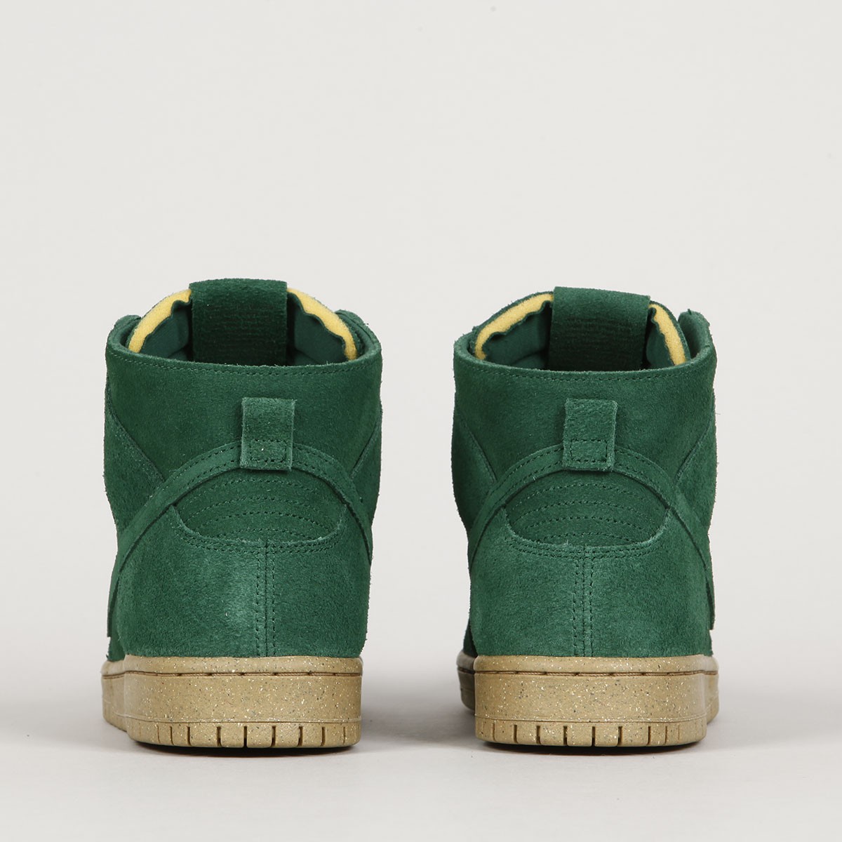 Ikonický model bot Nike SB Dunk High Pro Decon v barevném provedení Gorge Green. Deconstructed řada vynechává nedůležité věci, zaměřuje se pouze na nejlepší materiály, jednoduchost a lehkost. Od prvního nazutí působí vyšlápnutým dojmem. Kotníková verze má svršek vyrobený z broušeného semiše s perforovanou špičkou, odlehčená cupsole podrážka z recyklátu má navíc Zoom Air polštář na tlumení nárazů. Klínek na jazyku zajišťuje dokonale padnoucí střih, který je zárukou vynikajícího kontaktu s prknem a jeho ovládání. Odhalený, lehčí jazyk a polstrovaný lem kotníku pro větší pohodlí, z boku klasický swoosh. Na jazyku semišová nášivka s vyraženým logem Nike SB.