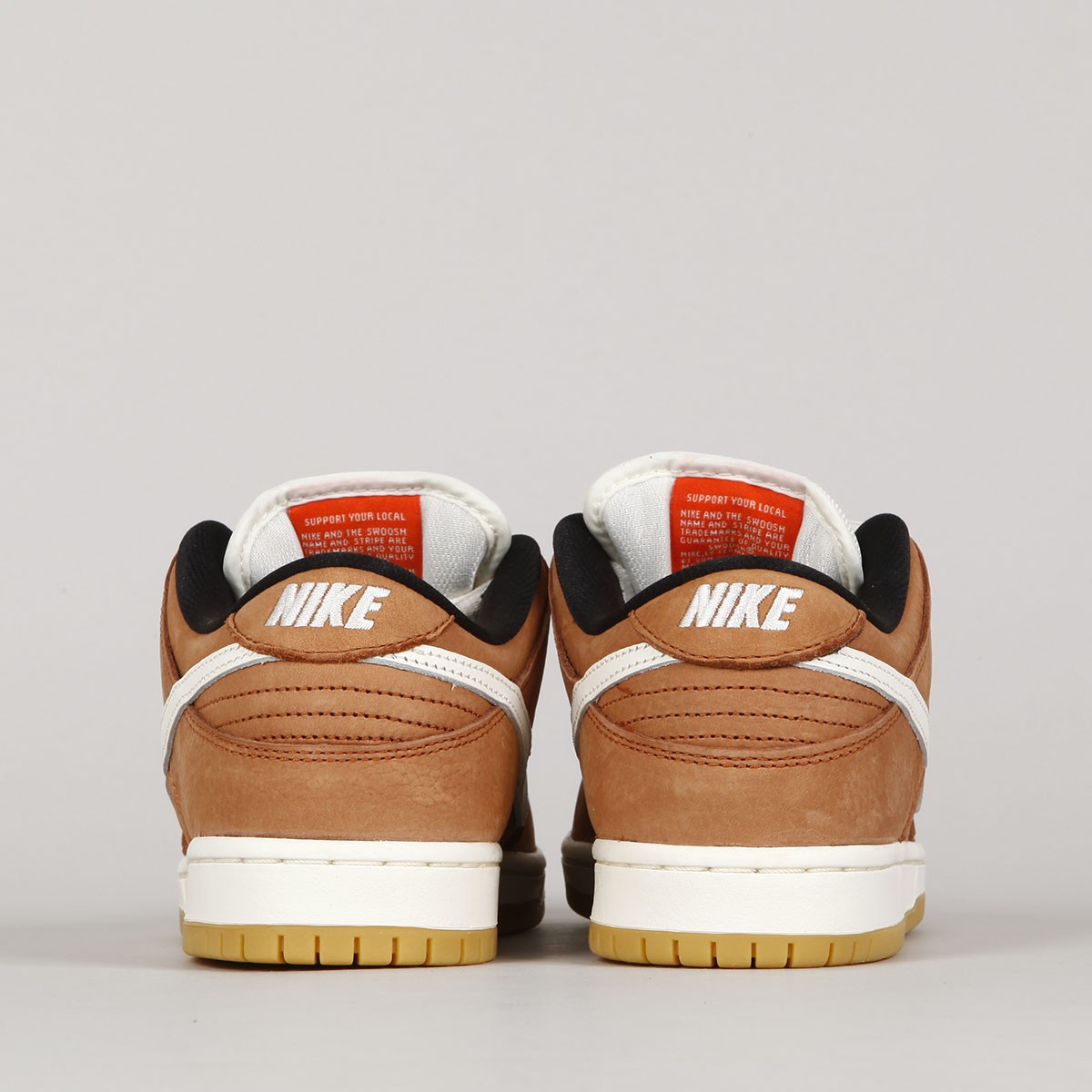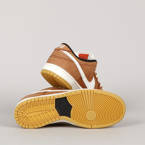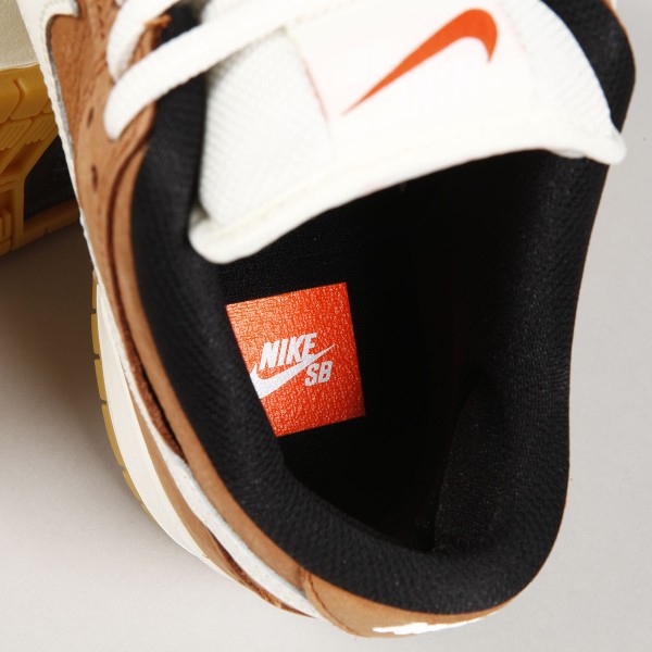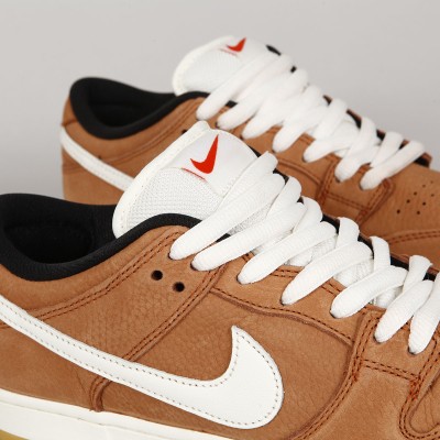 Boty Nike SB, ikonický model Dunk Low Pro Dark Russet z limitované kolekce Orange Label. Ve vintage barevném provedení s oranžovými detaily, které jsou inspirované originálními oranžovými krabicemi Nike. Tyto boxy byly poprvé uvedeny na trh v roce 1971. Svršek je vyroben z hladké kůže, odlehčená cupsole podrážka má navíc Zoom Air polštář na tlumení nárazů. Klínek na jazyku zajišťuje dokonale padnoucí střih, který je zárukou vynikajícího kontaktu s prknem a jeho ovládání. Lem kotníku je opět polstrovaný pro větší pohodlí. Na jazyku je nášivka s oranžovým labelem Nike SB. Na vnitřní stélce čtvercové logo Orange Label. V balení jedny tkaničky navíc.