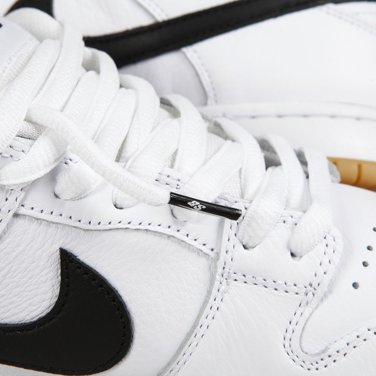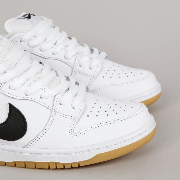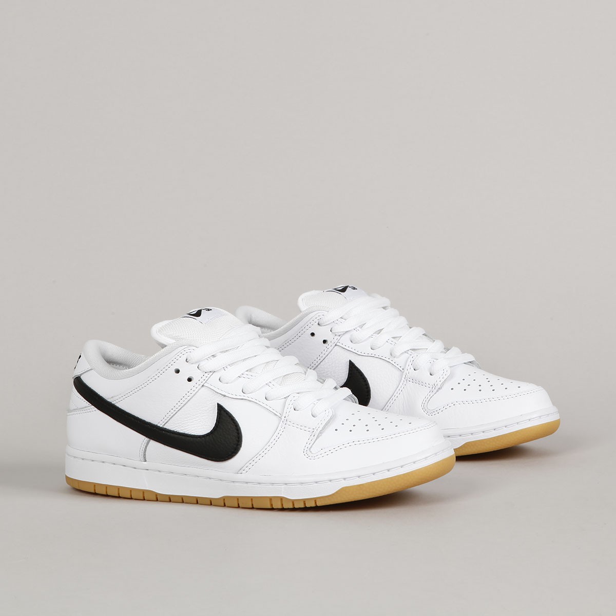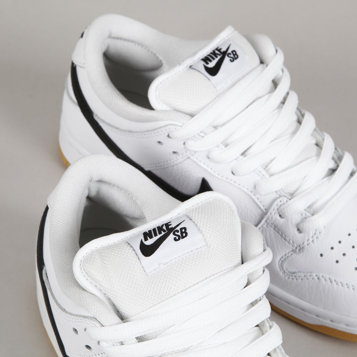 Model bot Nike SB Dunk Low Pro v barevném provedení White Black Gum. Od prvního nazutí působí vyšlápnutým dojmem. Nízká verze má svršek vyrobený z hladké kůže s perforovanou špičkou, odlehčená cupsole podrážka má navíc Zoom Air polštář na tlumení nárazů. Klínek na jazyku zajišťuje dokonale padnoucí střih, který je zárukou vynikajícího kontaktu s prknem a jeho ovládání. Tlustý textilní jazyk s logem Nike SB a polstrovaný lem kotníku pro větší pohodlí, z boku klasický swoosh.
