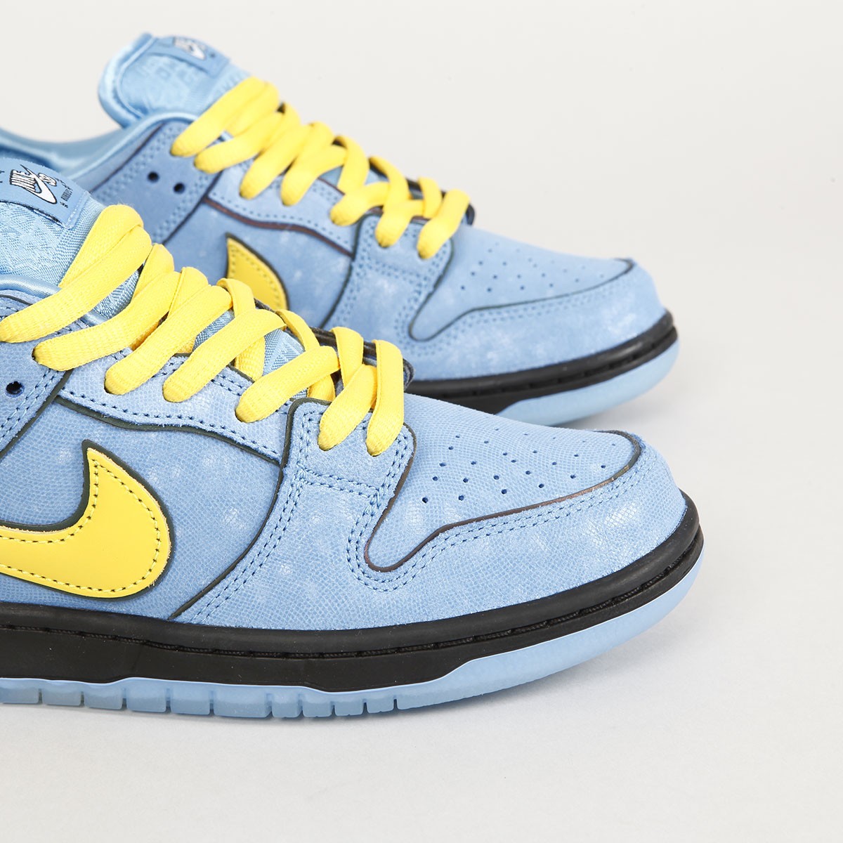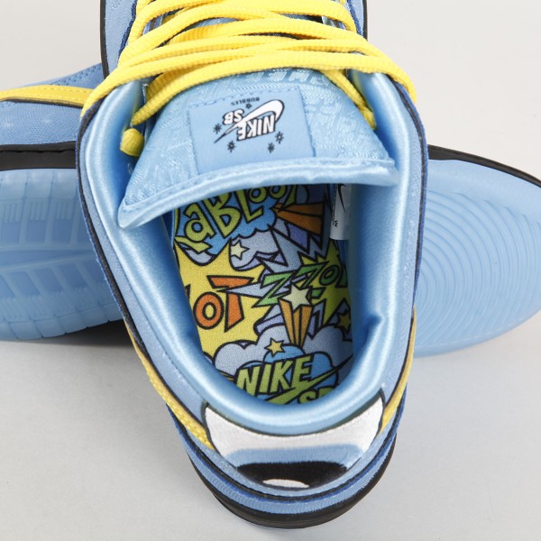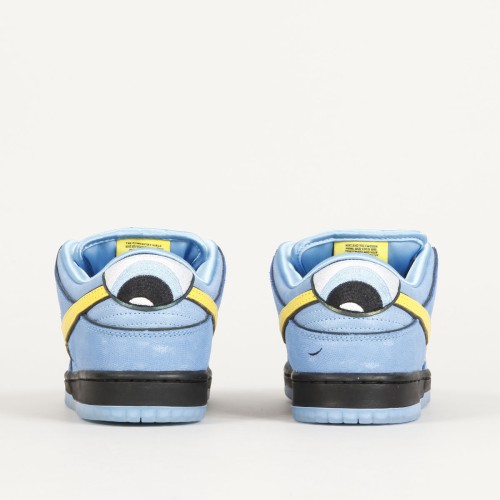 Model bot Nike SB Dunk Low ve speciální limitované kolaboraci s Powerpuff Girls. Powerpuff Girls je ikonický seriál z devadesátek, v českém znění "Raketové holky", vytvořený animátorem Craigem McCrackenem. Příběh se točí okolo tří holek - superhrdinek Blossom, Bubbles a Buttercup, které stvořil Profesor Utonium - smícháním všeho roztomilého, cukru, pepře, soli a chemikálie X, aby bojovaly proti nejrůznějším padouchům a zachraňovaly svět. Modrá barva symbolizuje Bubbles, štístko a smíška.