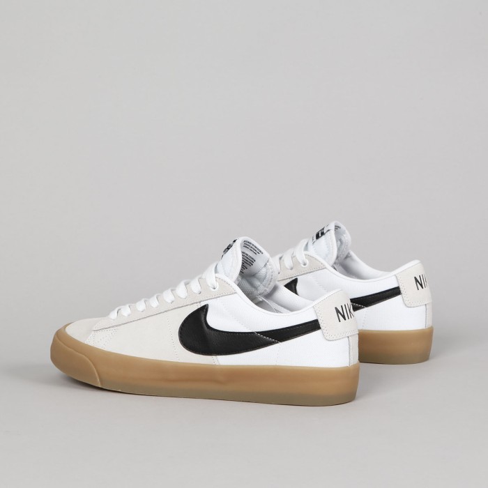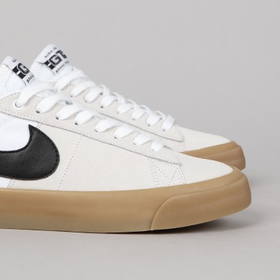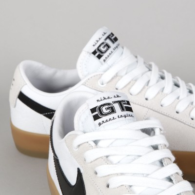 Boty Nike SB, promodel ridera Granta Taylora. Blazer Low GT vychází ze dvou modelů bot Nike, modelu Blazer a Bruin. Semišový svršek, našitý swoosh, horní očko kovové, zesílená špička a polstrovaná patka. Technologie Zoom Air v oblasti paty pro tlumení nárazů. Zvýšená vulkanizovaná podrážka se stromečkovým vzorem zajištuje lepší přilnavost na prkně. Iniciály GT a logo Nike SB na jazyku a vnitřní stélce.