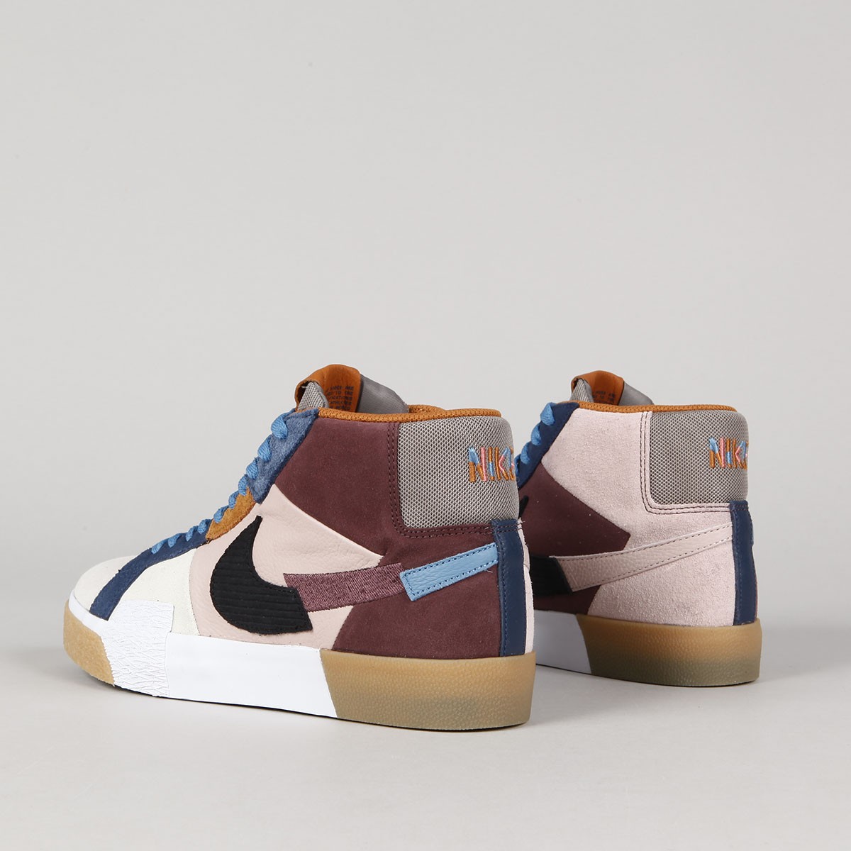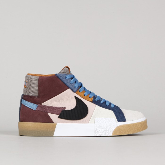 Kotníkové boty Nike SB Blazer Mid Premium v barevném provedení Dark Wine/ Black- Pink Oxford- Cashmere jsou inspirovány komunitními uměleckými prostory v Barceloně. Legendární model bot Blazer od Nike v předělávce pro Skateboarding sekci. Tento model je vyroben z kombinace semiše, kůže a canvasu, má vulkanickou podrážku, z boku rozházený swoosh a na jazyku je nášivka Nike SB. Na patě vyšitý nápis Nike. Vytažená guma v oblasti ollie zóny pro delší životnost. Vnitřní stélka je navíc vybavena technologií Zoom Air pod patou a zajištujě ochranu při dopadu a tlumení tvrdých nárazů. Díky vulkanické podrážce se stromečkovým vzorem perfektně přilne k různým typům povrchů a zaručuje tak skvělý kontakt s prknem. Tyto boty jsou primárně určeny na skateboarding, ale využití najdou i při dalších sportech a běžném nošení.