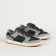 Model bot Nike SB Dunk Low Pro v kombinaci kouřově šedé a černé barvy. Od prvního nazutí působí vyšlápnutým dojmem. Nízká verze má svršek vyrobený ze semiše s perforovanou špičkou, odlehčená cupsole podrážka má navíc Zoom Air polštář na tlumení nárazů. Klínek na jazyku zajišťuje dokonale padnoucí střih, který je zárukou vynikajícího kontaktu s prknem a jeho ovládání. Silnější textilní jazyk s logem Nike SB a polstrovaný lem kotníku pro větší pohodlí, z boku klasický kožený černý swoosh. V balení jedny černé tkaničky navíc.