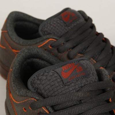 Nike SB Dunk Low Pro Premium oslavují starověkou tradici, která vznikla v rakouských Alpách a odtud se postupně rozšířila do celého Rakouska a poté i do okolních států. Postava Krampuse, čerta, trestá nezbedné děti, zatímco sv. Mikuláš odměňuje ty poslušné. Model Krampus Dunk je vyrobený z popraskané kůže, kterou lehce prosvítá základní oranžová barva. Tato kombinace symbolizuje rozpálené žhavé uhlíky a oheň. Ohořelý look postupně přechází až na lem podrážky. Skvělým detailem jsou štítky na vnitřní straně jazyka, je na nich nášivka s nápisem "Not surprised". Grafika na vnitřní stélce také odkazuje na žhavé uhlí a potisk na čerta. Ještě jeden malinký detail je ukrytý na spodní straně Zoom Air poštářků pro odpružení a tlumení, na jednom je obrázek uhlí a na druhém list hříchů. Na patě najdeš vyšitý nápis Nike. V balení jsou navíc náhradní oranžové tkaničky, které ti budou krásně ladit s podrážkou. A ještě dárková papírová visačka od sv. Mikuláše.