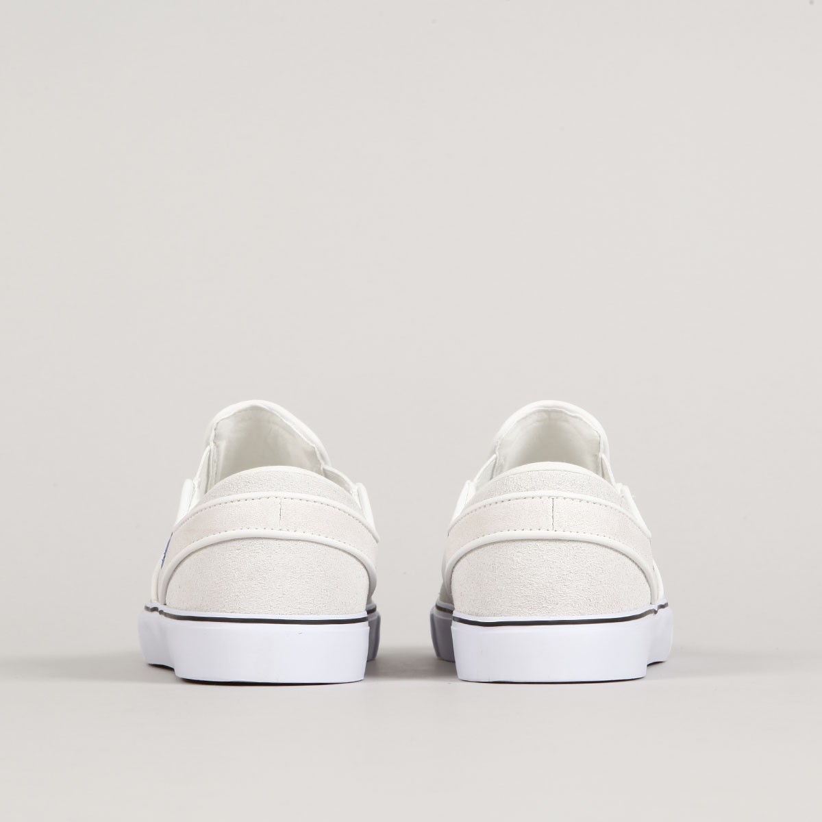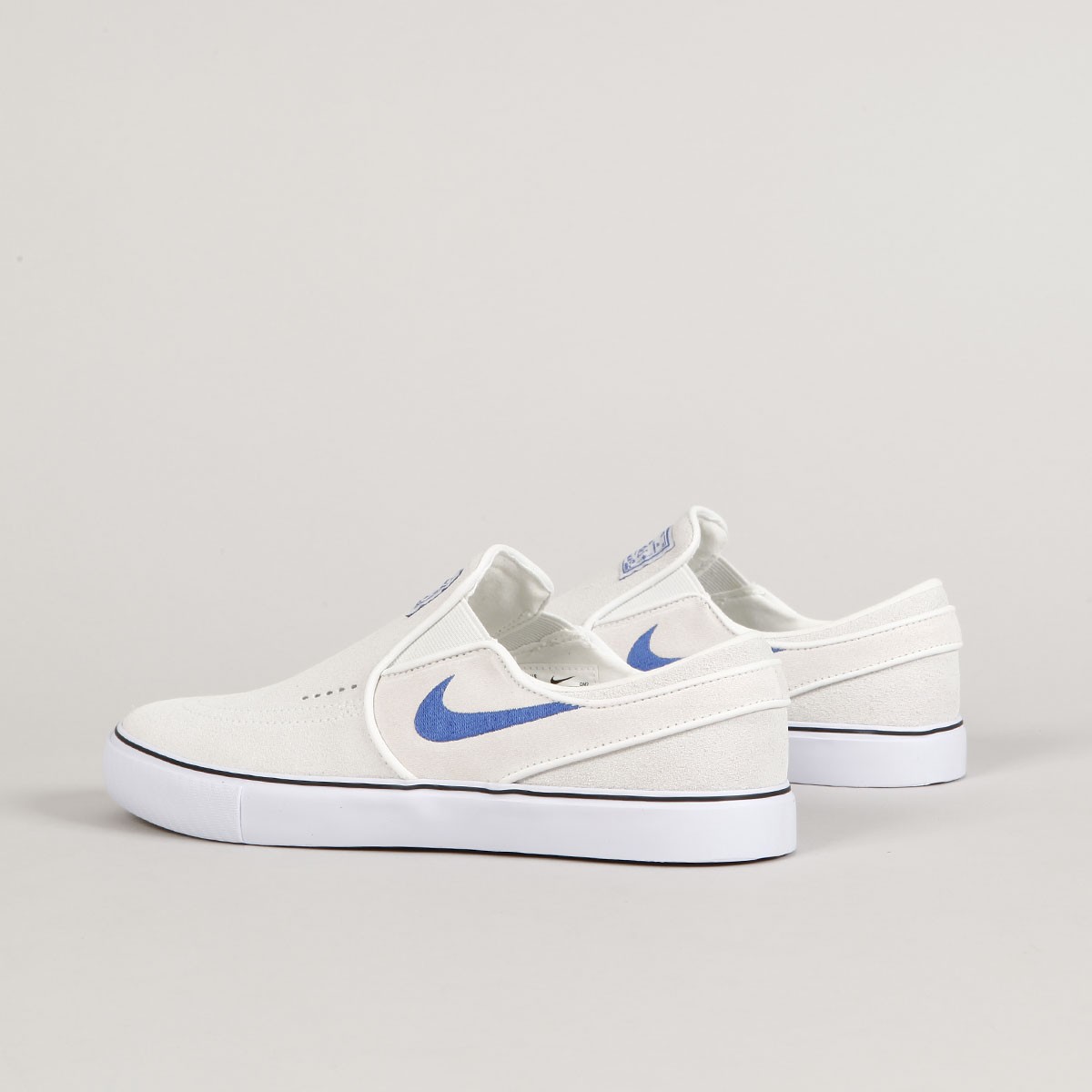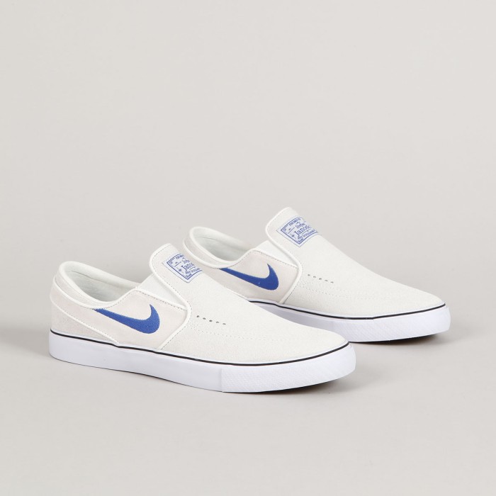 Boty Nike SB Plus Janoski Slip v limitovaném Quickstrike provedení. Promodel Stefana Janoski Plus Slip v barevném provedení Summit White Hyper Royal. Nízké semišové provedení, odvětrávací očka na špičce a klasická vulc podrážka se stromečkovým vzorem. Na jazyku je nášivka Nike Skateboarding a z boku vyšitá Nike fajfka. Uvnitř vložka s Zoom Air pošltářem na tlumení nárazů.