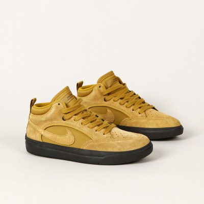Boty Nike SB, silueta s názvem React Leo. Jedná se o promodel Leo Baker. Svršek mají vyroben z kombinace semiše a hladké kůže s perforovanou špičkou, vulc podrážka s technologií React pro lepší přilnavost. Vnitřní stélka je z měkké pěny a dobře tlumí nárazy. Špičky bot mají dvojité prošívání. Vnitřní lem paty a kotníku je příjemně polstrovaný. Díky poutku na patě se lépe nazouvají.