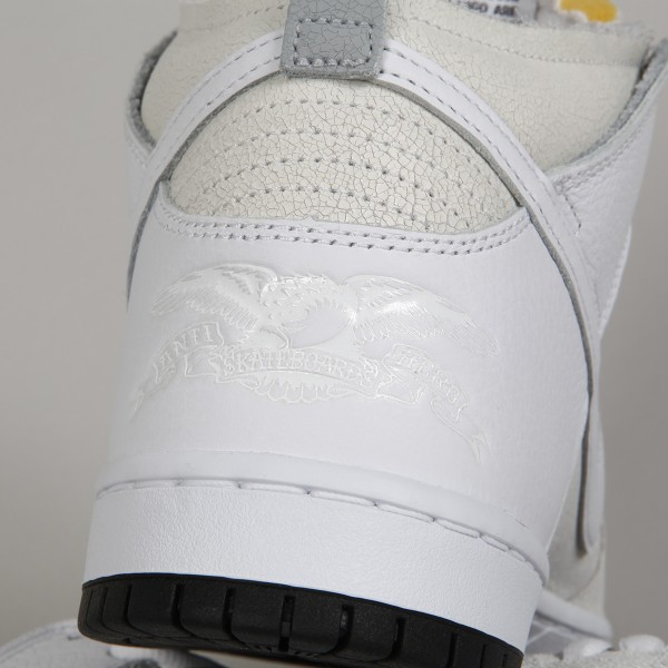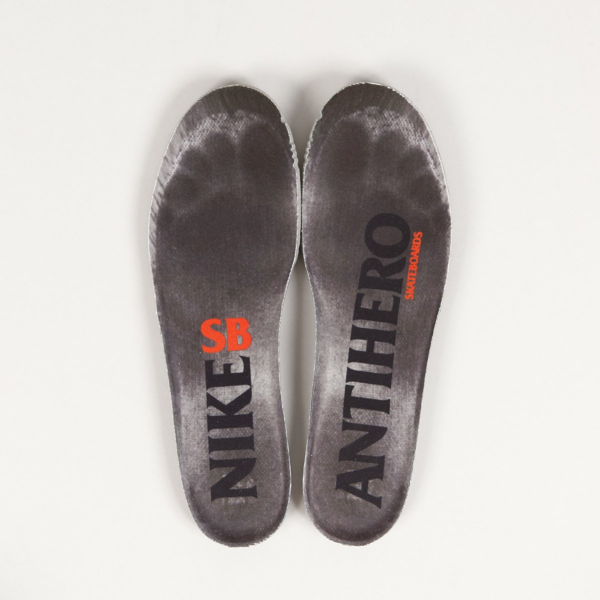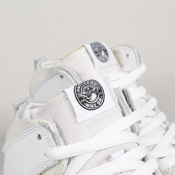 Legendární model bot Nike SB Dunk High ve speciální limitované kolekci se značkou Anithero Skateboards. Byla založena v polovině 90.let skaterem Julienem Strangerem. Kromě skate desek se jejich výroba rozšířila i na skate oblečení a doplňky. V jejich týmu najdeš jména jako Grant Taylor, Brian Anderson, John Cardiel, Chris Pfanner a další. Kotníková verze má svršek vyrobený z prémiových materiálů, včetně texturované kůže a semiše, odlehčená cupsole podrážka má navíc Zoom Air polštář na tlumení nárazů. Ze spoda polštářku je slogan "Stay Ready". Klínek na jazyku zajišťuje dokonale padnoucí střih, který je zárukou vynikajícího kontaktu s prknem a jeho ovládání. Odhalený, lehčí jazyk a polstrovaný lem kotníku pro větší pohodlí, z boku kožený swoosh. Na jazyku a vnitřní stélce logo Nike SB x Antihero. Na patě vyražené logo s orlem. Vložky mají navíc grafiku Nike SB x Antihero.