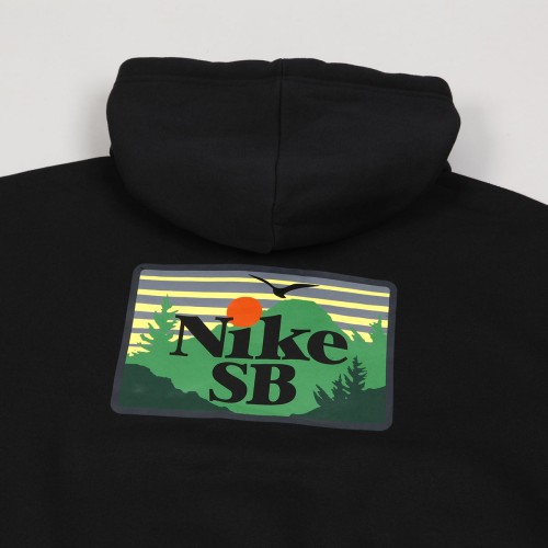 Mikina Nike SB s názvem Approach One Off Hoodie v černé barvě má stahovatelnou kapuci se šňůrkami a vepředu velkou kapsu na ruce. Na prsou je kontrastní potisk malého loga Nike SB a na zádech velký potisk přírody. Perfektně padnoucí střih s dlouhými klínovými (raglan) rukávy. Navrženo pro skateboarding, ale vhodné i na běžné nošení. Materiál 80% bavlna, 20% polyester, vnitřek fleece.