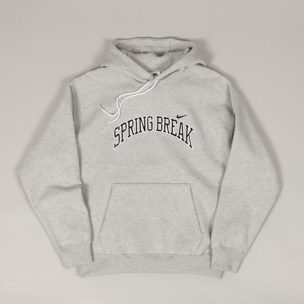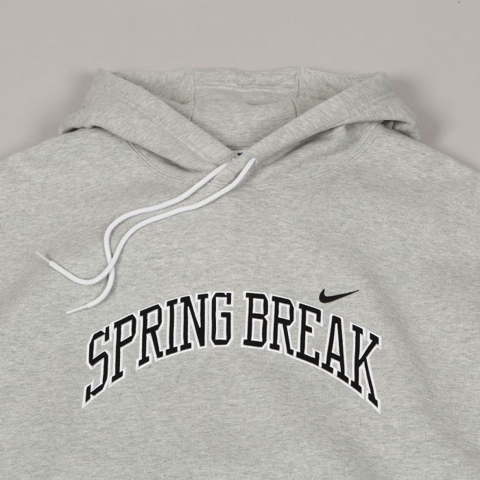 Mikina Nike SB Spring Break Hoodie má stahovatelnou kapuci se šňůrkami a vepředu velkou kapsu na ruce. Uprostřed prsou vyšitý nápis Spring Break s mini fajfkou Nike. Na levém boku decentní vlaječka značky. Česaný fleece je příjemný na nošení a navíc hezky hřeje. Navrženo pro skateboarding, ale vhodné i na běžné nošení. Materiál 84% bavlna a 16% polyester.