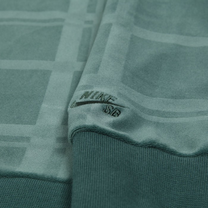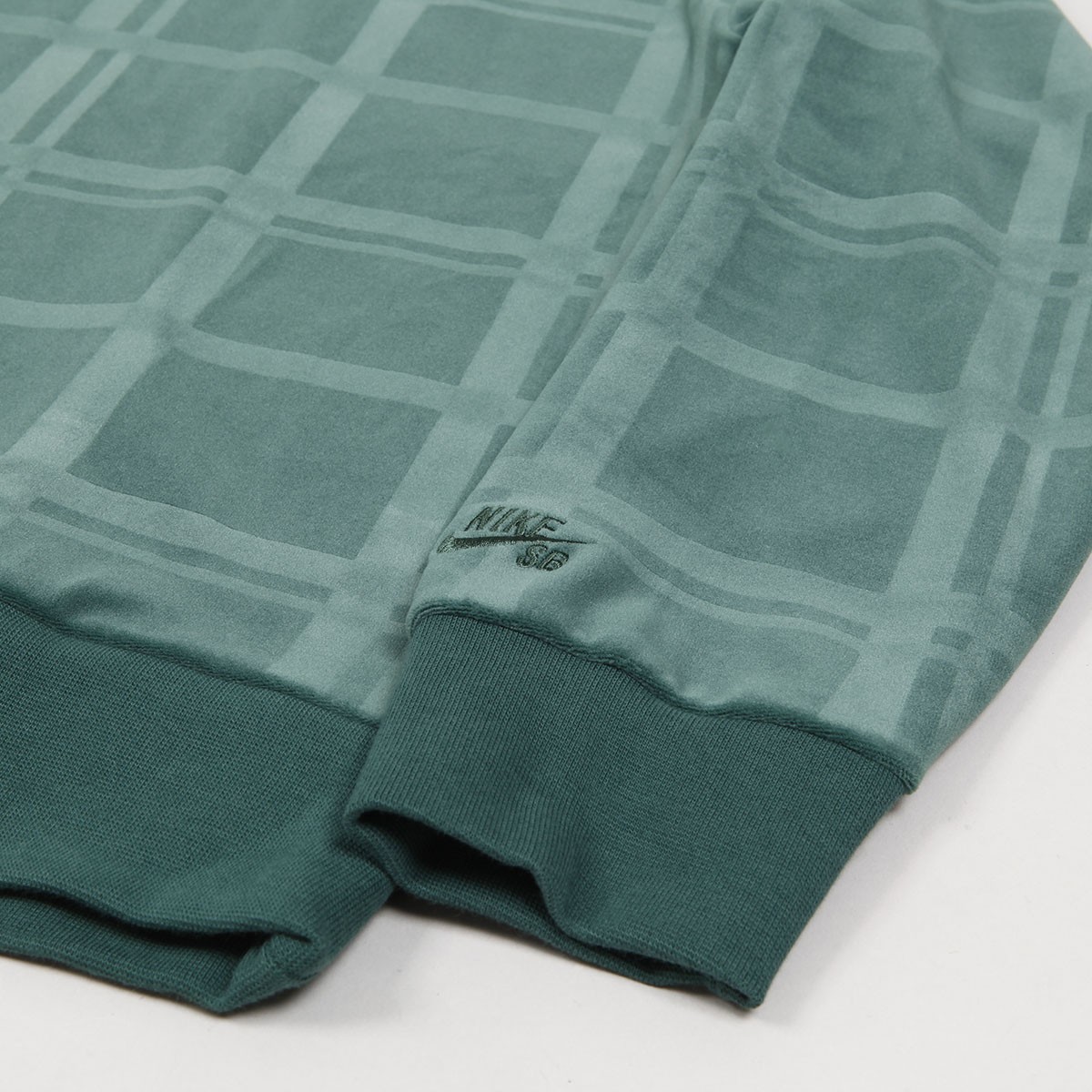 Mikina Nike SB s názvem Plaid Crewneck v zelené barvě ze sametově měkkého materiálu s vytačeným kostkovaným vzorem. Na levém rukávu vyšité decentní logo Nike SB. Perfektně padnoucí střih s dlouhými klínovými (raglan) rukávy. Navrženo pro skateboarding, ale vhodné i na běžné nošení. Materiál 92% polyester, 8% elastan. Alespoň 50% tvoří tkanina z recyklovaných polyesterových vláken.