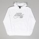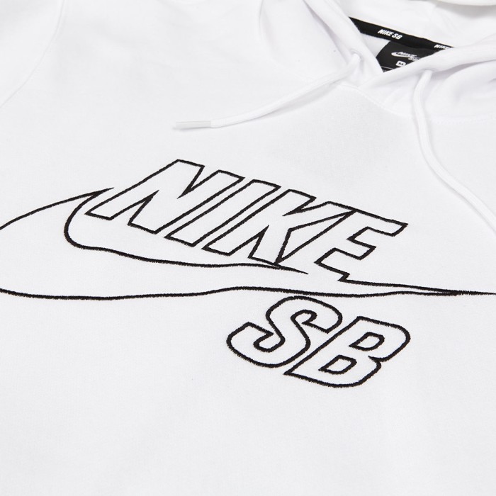 Mikina Nike SB s názvem Swoosh Embroidery v barvě White / Black má stahovatelnou kapuci se šňůrkami a vepředu velkou kapsu na ruce. V klokance skrytá kapsička na mobil s vývodem pro sluchátka. Na prsou je vyšitá kontrastní fajfka Nike SB, která se inspiruje motivy z 80. let a zezadu je malá nášivka s logem. Perfektně padnoucí střih s dlouhými klínovými (raglan) rukávy. Navrženo pro skateboarding, ale vhodné i na běžné nošení. Materiál 80% bavlna, 20% polyester, vnitřek fleece.