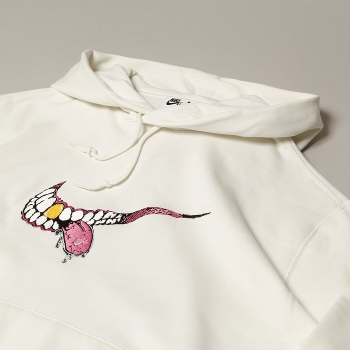 Mikina Nike SB Swoosh Grill Hoodie má stahovatelnou kapuci na tkaničky a vepředu velkou kapsu na ruce s další skrytou kapsičkou uvnitř. Na hrudi má vyšitý swoosh s motivem zubů a vypláznutého jazyku s logem Nike SB. Levý rukáv zdobí kontrastní logo značky.