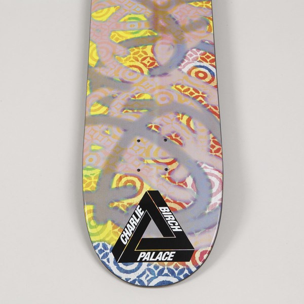 Skate deska od britské značky Palace Skateboards, za kterou jezdí jména jako Fairfax, Brady, Todd, Puig a další. Pro model Charlie Birch Pro Psychedelic Deck ve velikosti 8.5 palců s grafikou abstraktních barevných motivů. Na patce logo Palace. Vrchní strana desky má celoplošný potisk černobílé fotky. Ke každé desce grip zdarma.