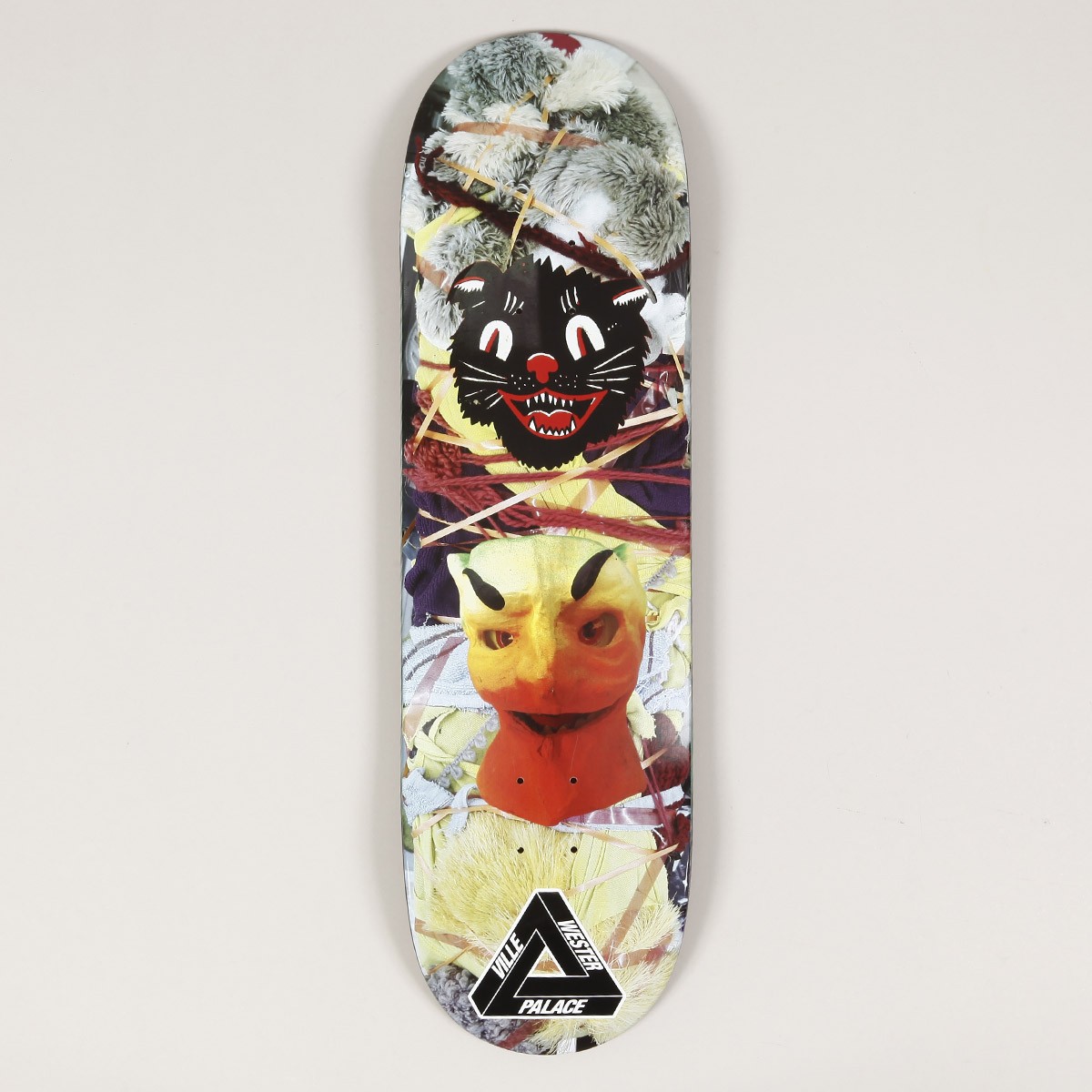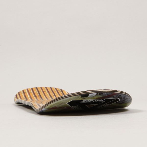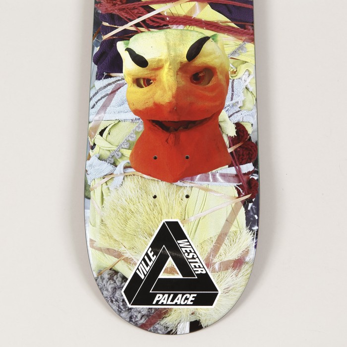 Pro model Ville Wester Pro Dragon Deck ve velikosti 9.0 palců s grafikou dračí hlavy z ovoce a pozadím z látek. Na patce logo Palace. Ke každé desce grip zdarma. Vrchní strana desky Palace má motiv mříží.