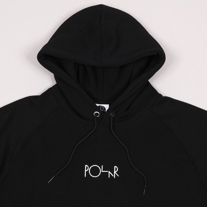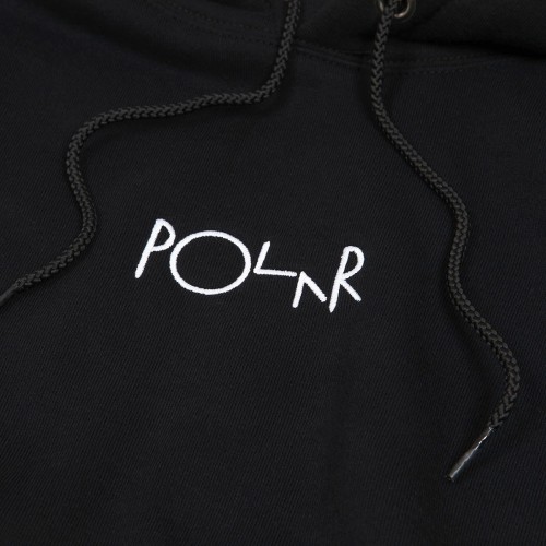 Mikina Polar Skate Co. s názvem Default Hoodie v černé barvě. Kapuce stahovatelná šňůrkami a vpředu velká kapsa na ruce. Menší nápis POLAR v bílé barvě vyšitý na prsou. Materiál 70% bavlna a 30% polyester, 310 g, uvnitř jemně broušená. Vyrobeno v Portugalsku.