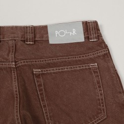 Kalhoty Polar Skate Co. s názvem 93 Denim Jeans. Mají širší retro střih s rovnými nohavicemi a sníženým sedem. Zapínáni na zakrytý zip a knoflík. V pravé kapse nášivka. Vyrobeno ze 100% bavlny, 325 g. Vyrobeno v Polsku.