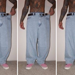 Kalhoty Polar Skate Co. s názvem Big Boy OG Logo Jeans ve světle modré barvě. Mají široký retro střih s širokými nohavicemi. Zapínáni na zakrytý zip a knoflík. V pravé kapse vyšité originální logo Big Boy - postavička v červeném tričku. Vyrobeno ze 100% bavlny, 435 g. Vyrobeno v Polsku.