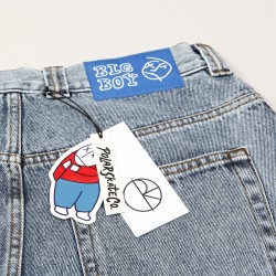 V pravé kapse nášivka smajlíka. Zadní lem pasu zdobí kontrastní label s nápisem Big Boy.