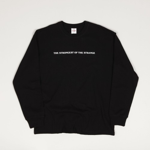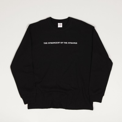 Triko Polar Skate Co. s názvem Strongest Of The Strange LS Tee v černé barvě. Klasický Regular Fit střih s mírně sníženými rameny, žebrovaným límečkem u krku a dlouhými rukávy. Na prsou je kontrastní nápis Strongest Of The Strange a na zádech velká fotka. Motiv vytvořil Pontus Alv. Vyrobeno ze 100% bavlny, 220 gsm.