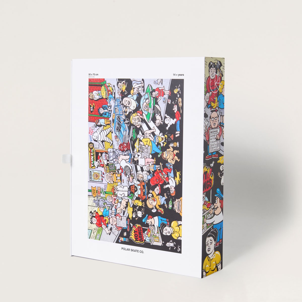 Puzzle od značky POLAR Skate Co s názvem Street Corner. Kreslená grafika rušné ulice s přechodem od Jacoba Ovgrena. Velikost 50 x 70 centimetrů. V balení 1000ks puzzlů.