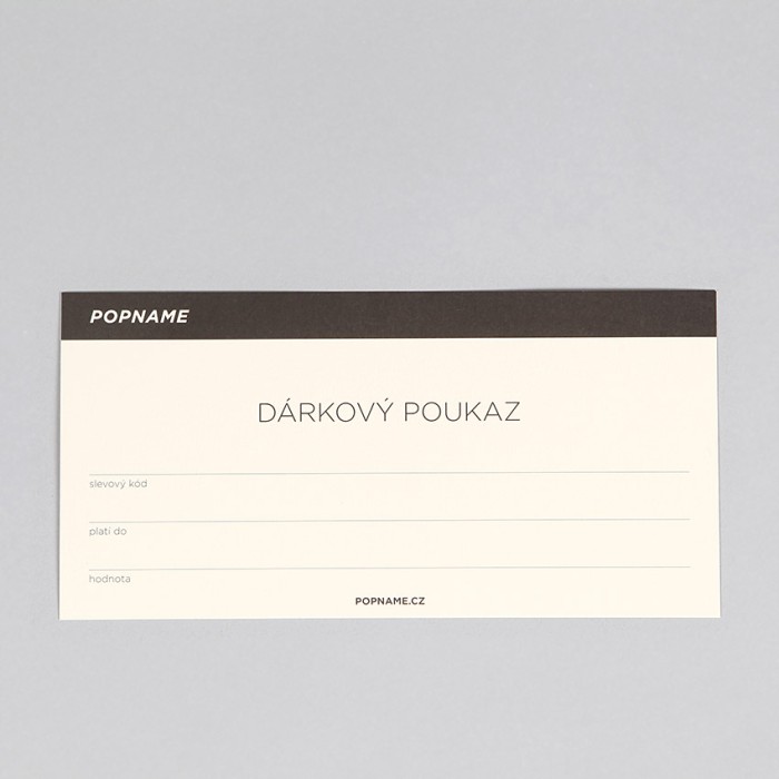 Dárkové poukazy na nákup na e-shopu www.popname.cz. Objednejte dárkový poukaz a vyberte si elektronickou, nebo tištěnou variantu. U elektronické je platba předem a okamžitě po zaúčtování ( proplacení ) částky obdržíte do emailu poukaz i s unikátním slevovým kódem. Tištěný odesíláme na dobírku Českou poštou. Platnost poukazu je jeden rok od data