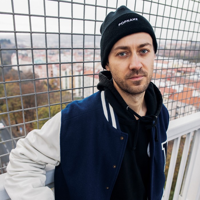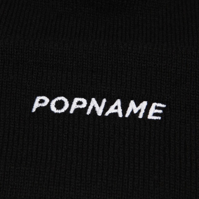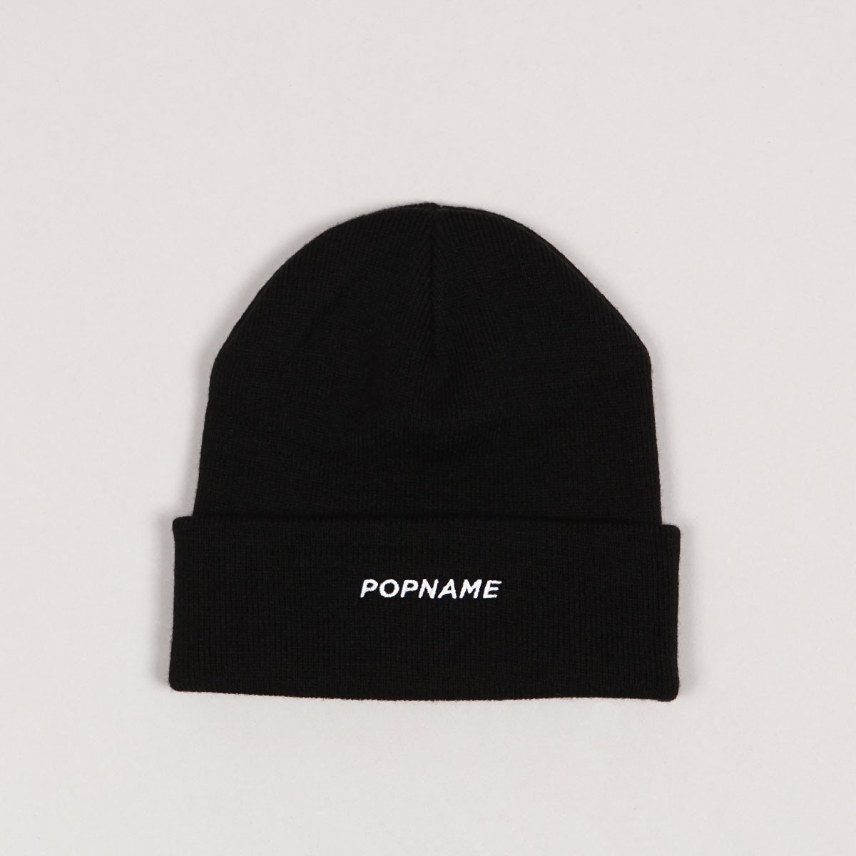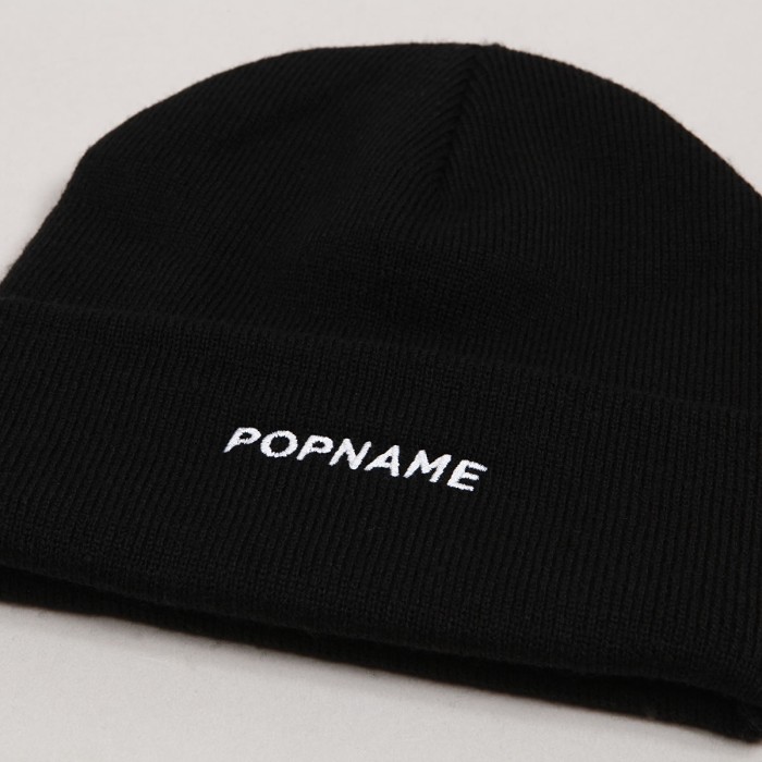 Kulich POPNAME Cuffed v černé barvě. Na čele je výšivka v bílé barvě s Basic logem POPNAME.